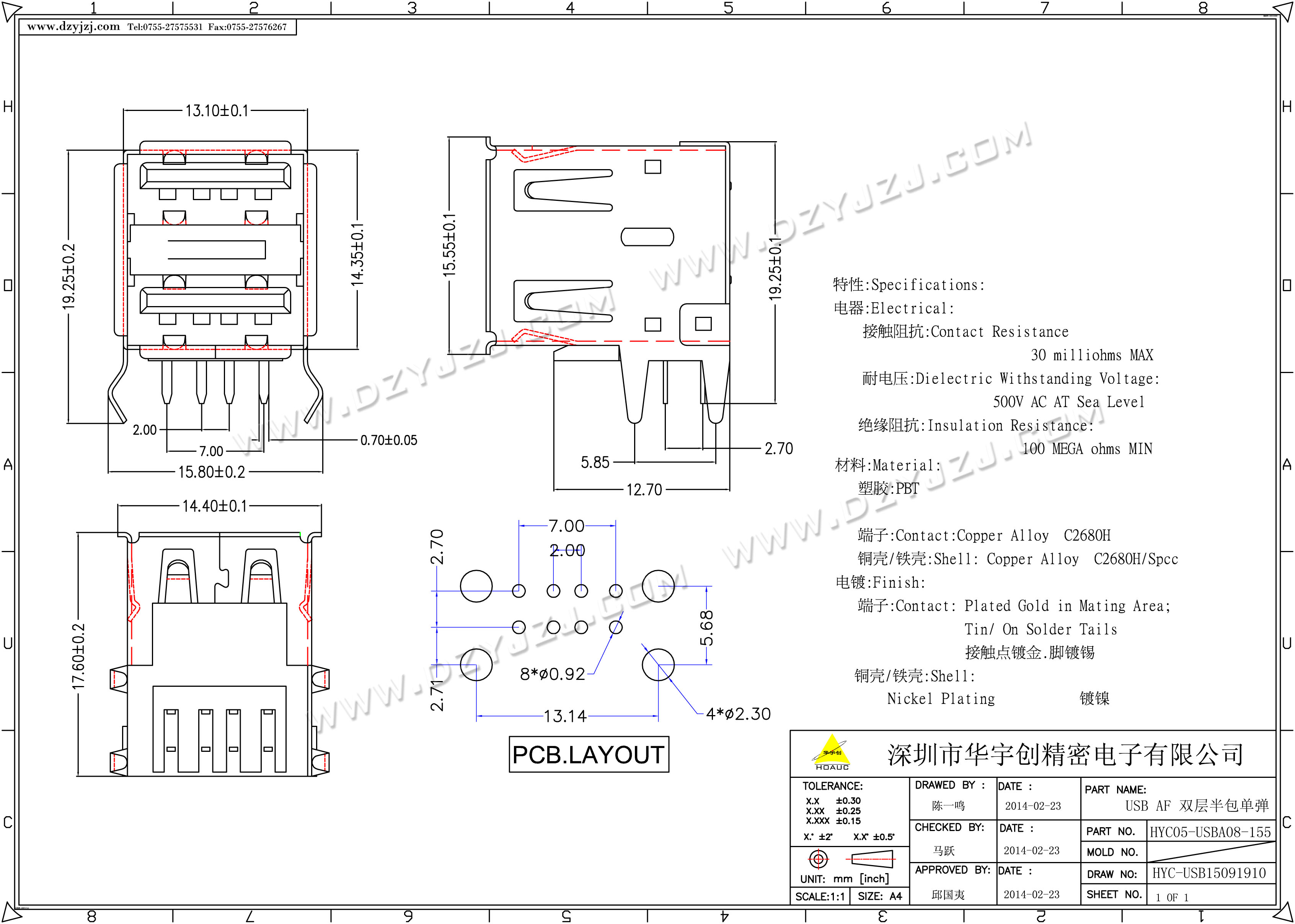 首页 > 分类目录 > USB A TYPE > USB AF 双层半包单弹