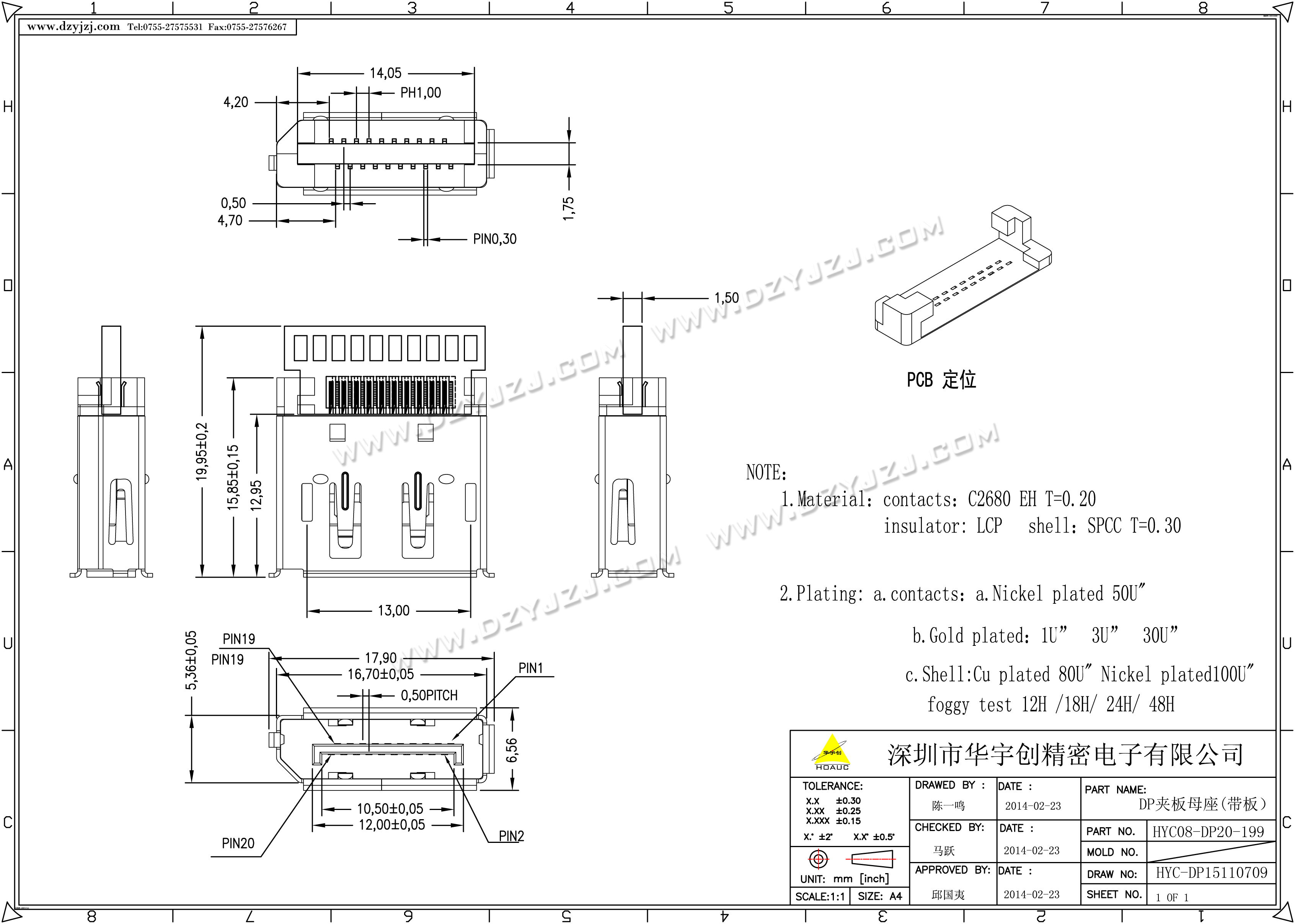 首页 > 分类目录 > DP 座 > DP夹板母座(带板)