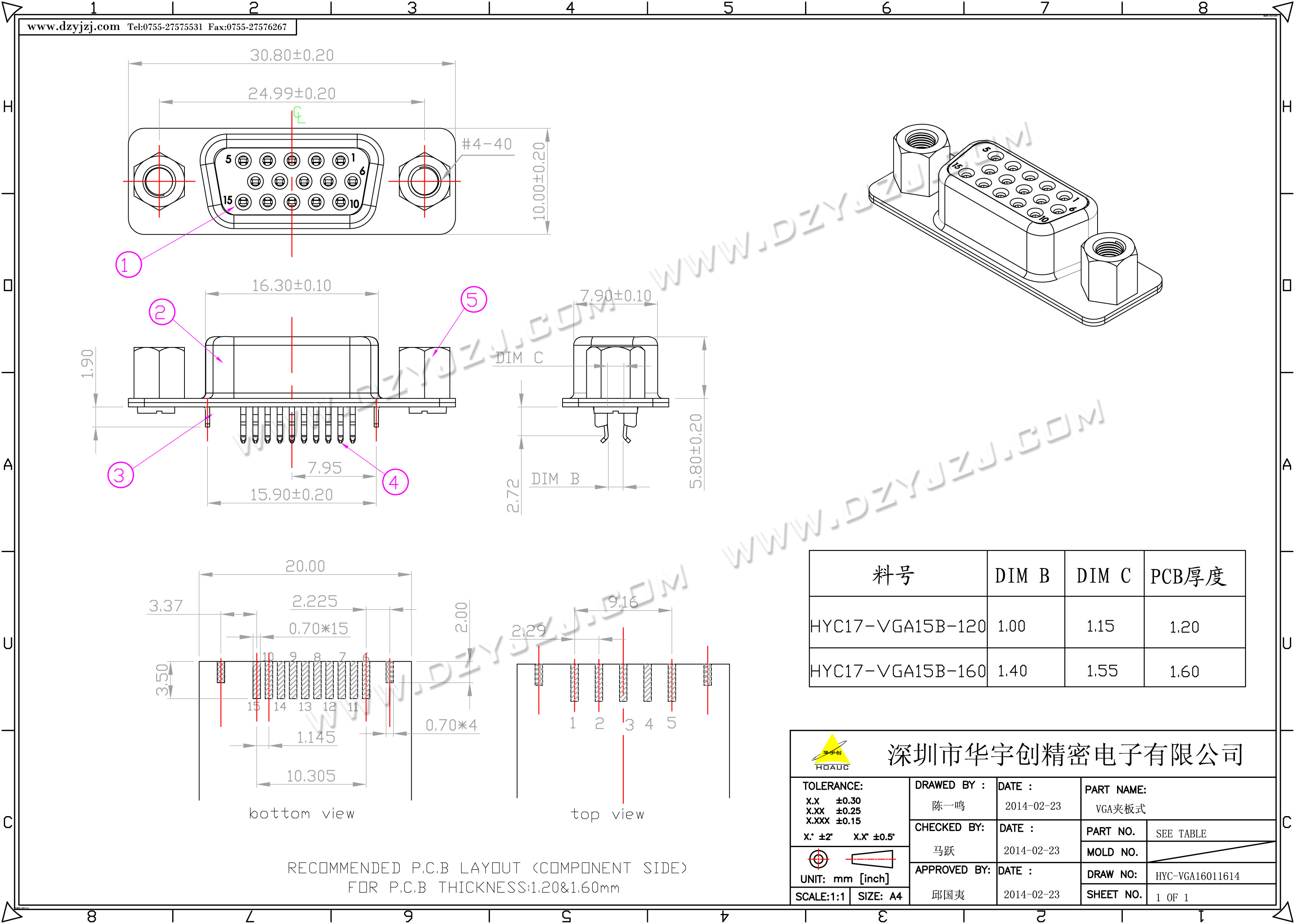 VGA夹板式