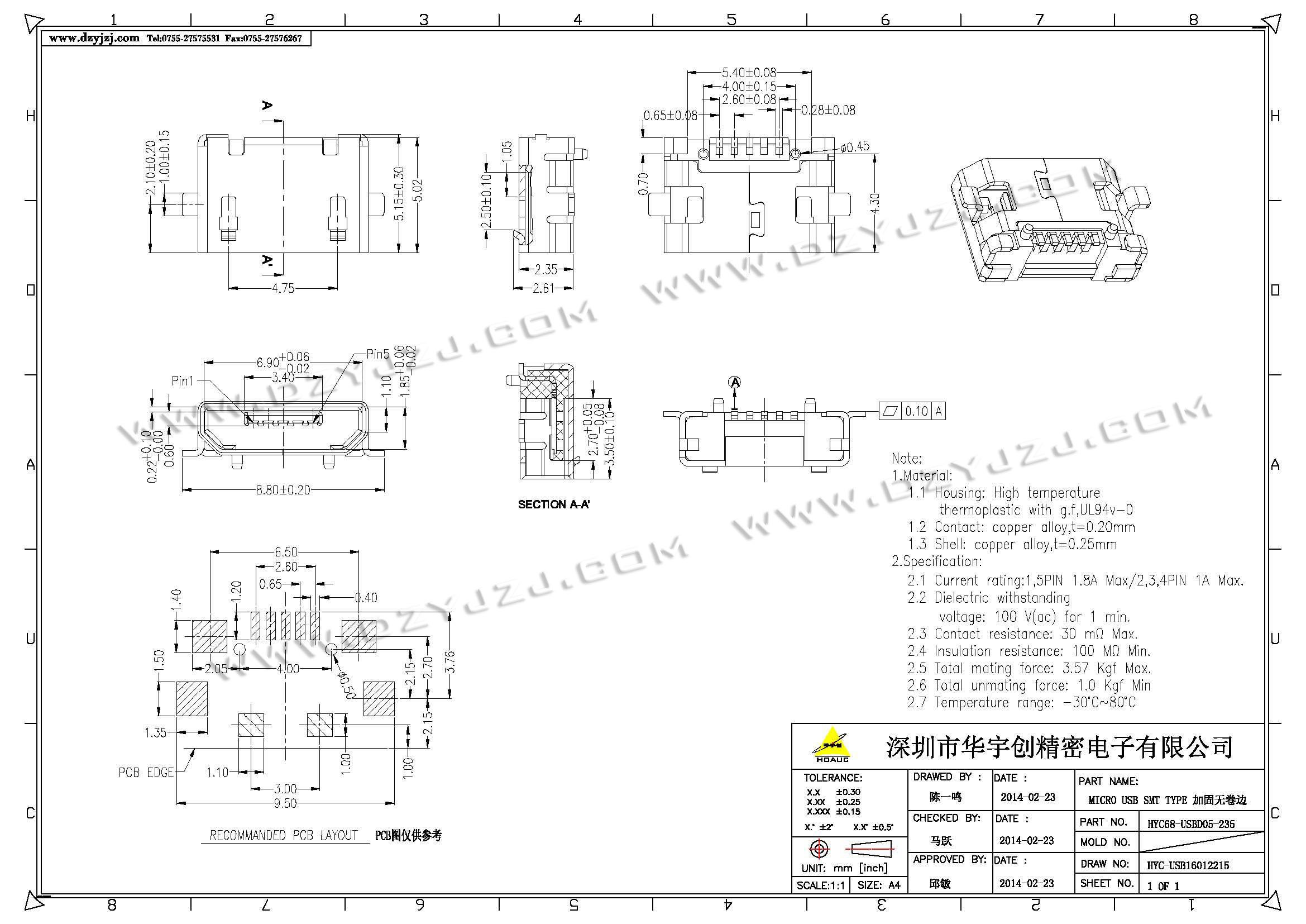 | 商品料号 | HYC68-USBD05-235 |