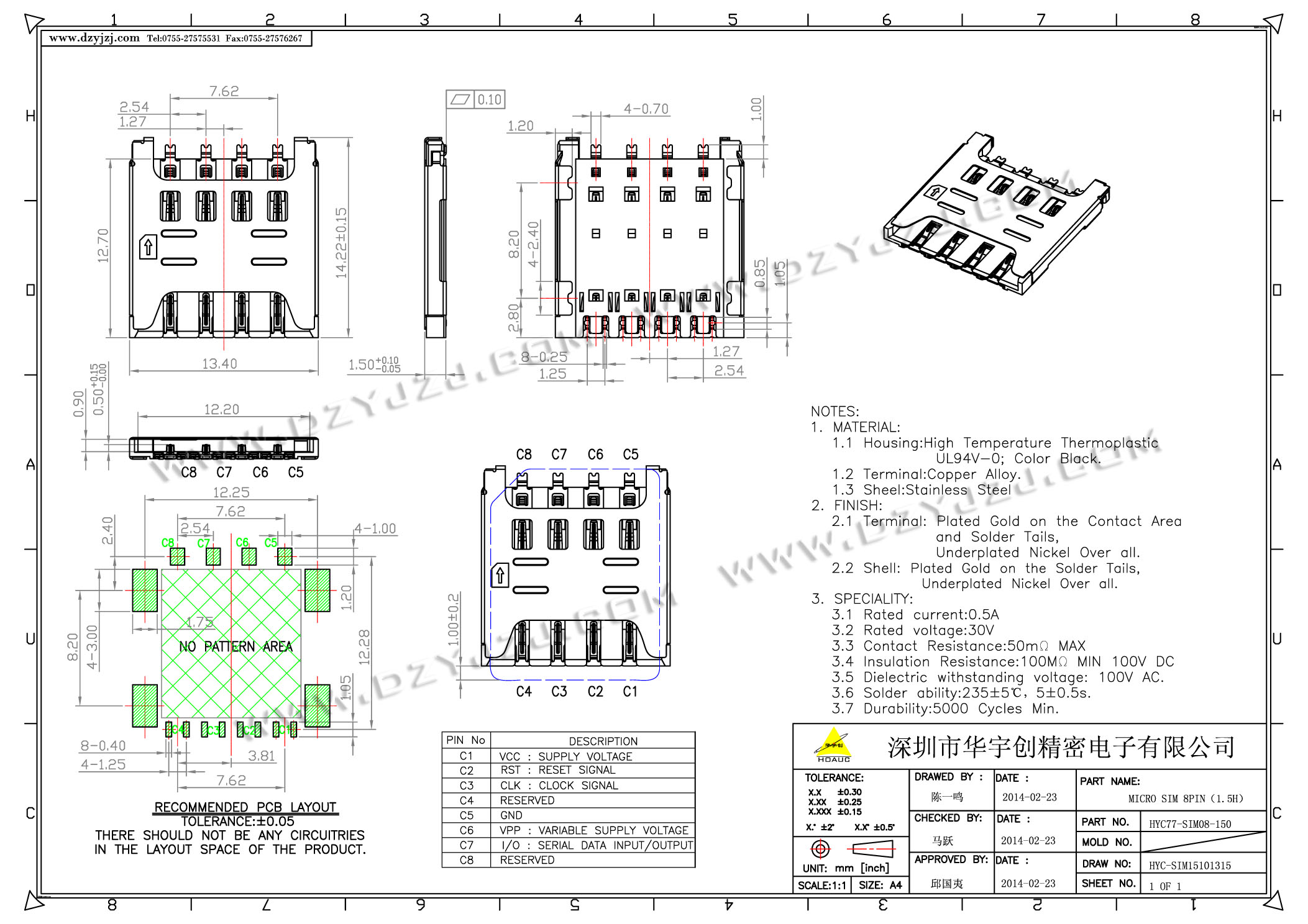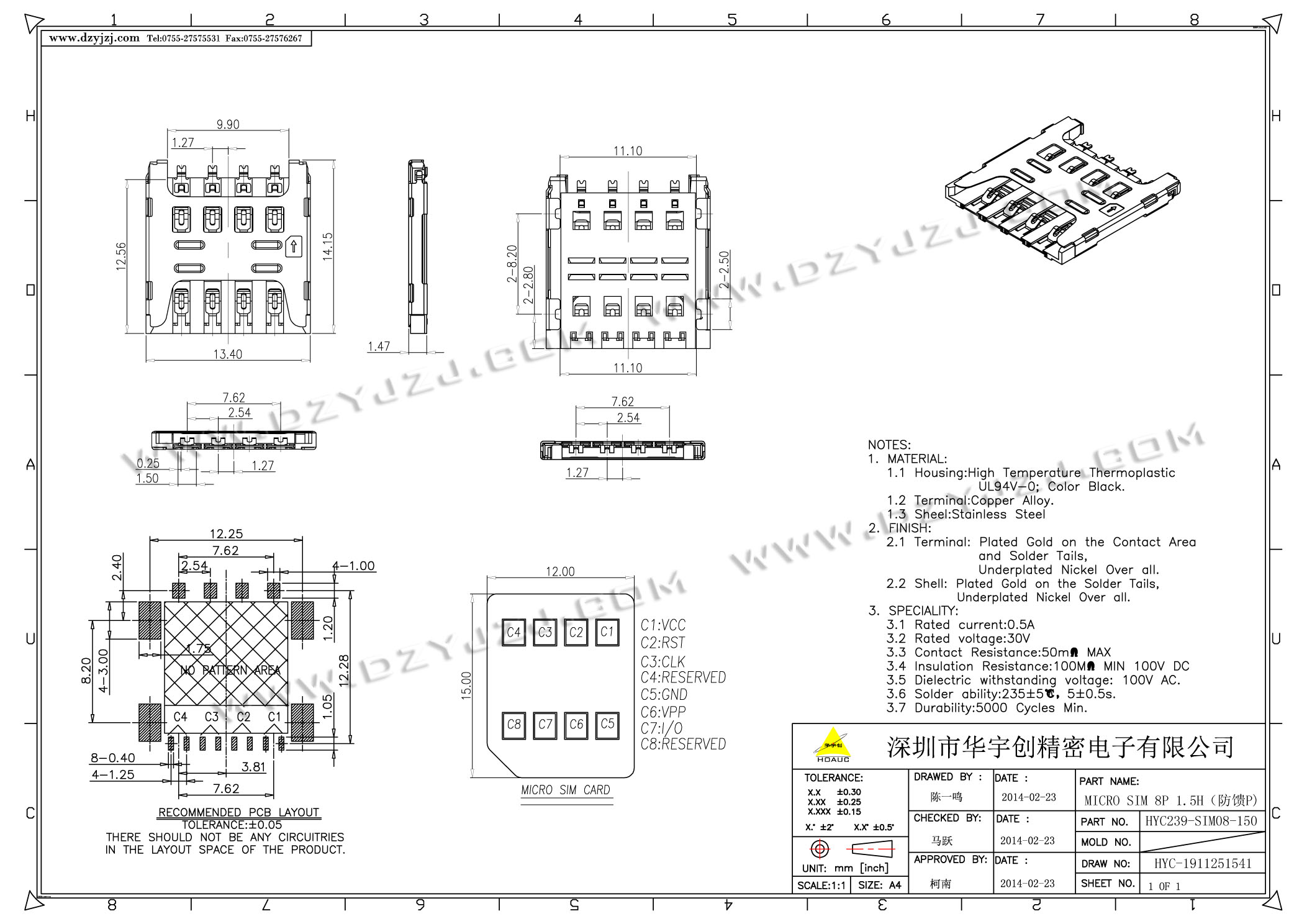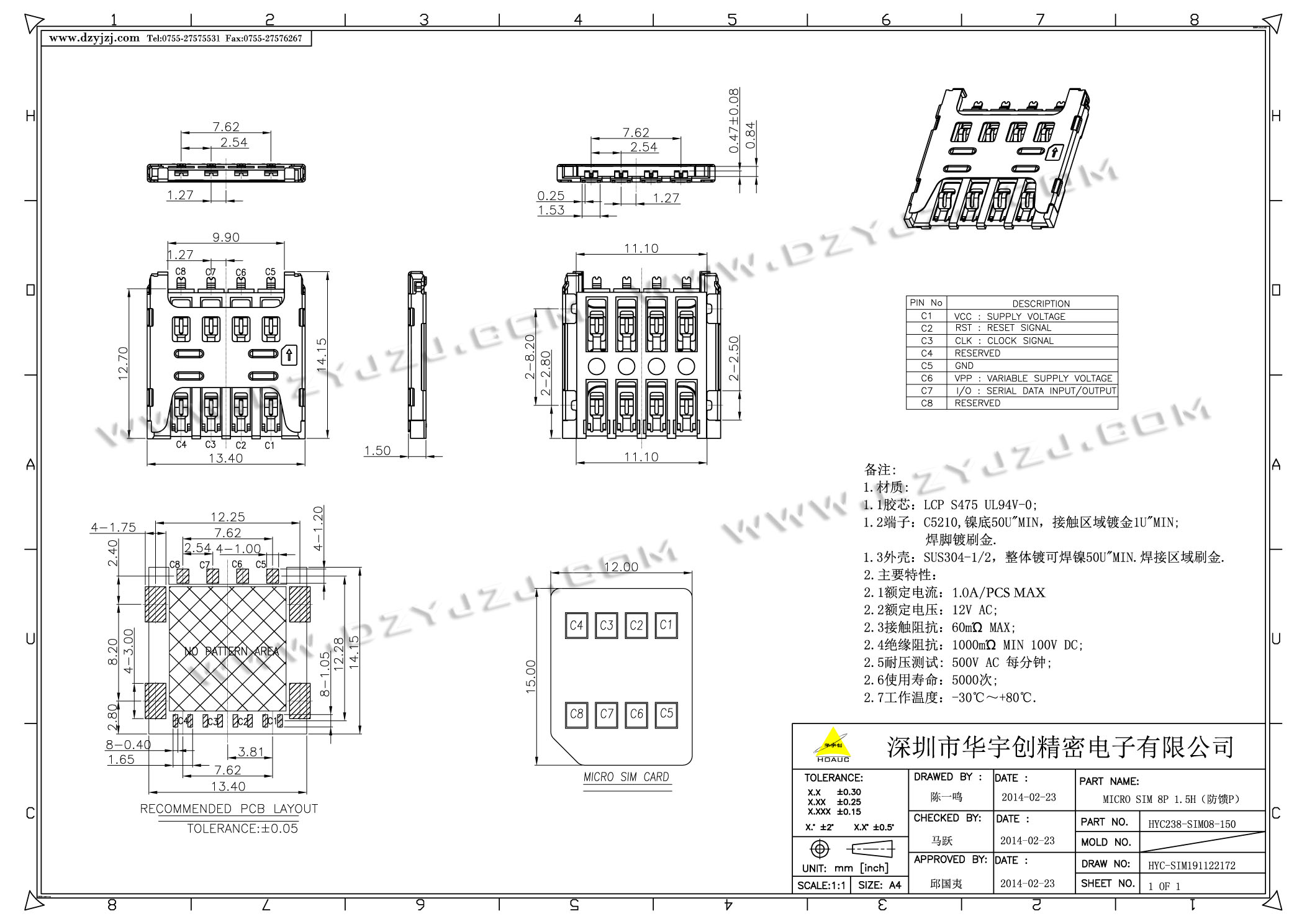 | 商品料号 | HYC238-SIM08-150 |