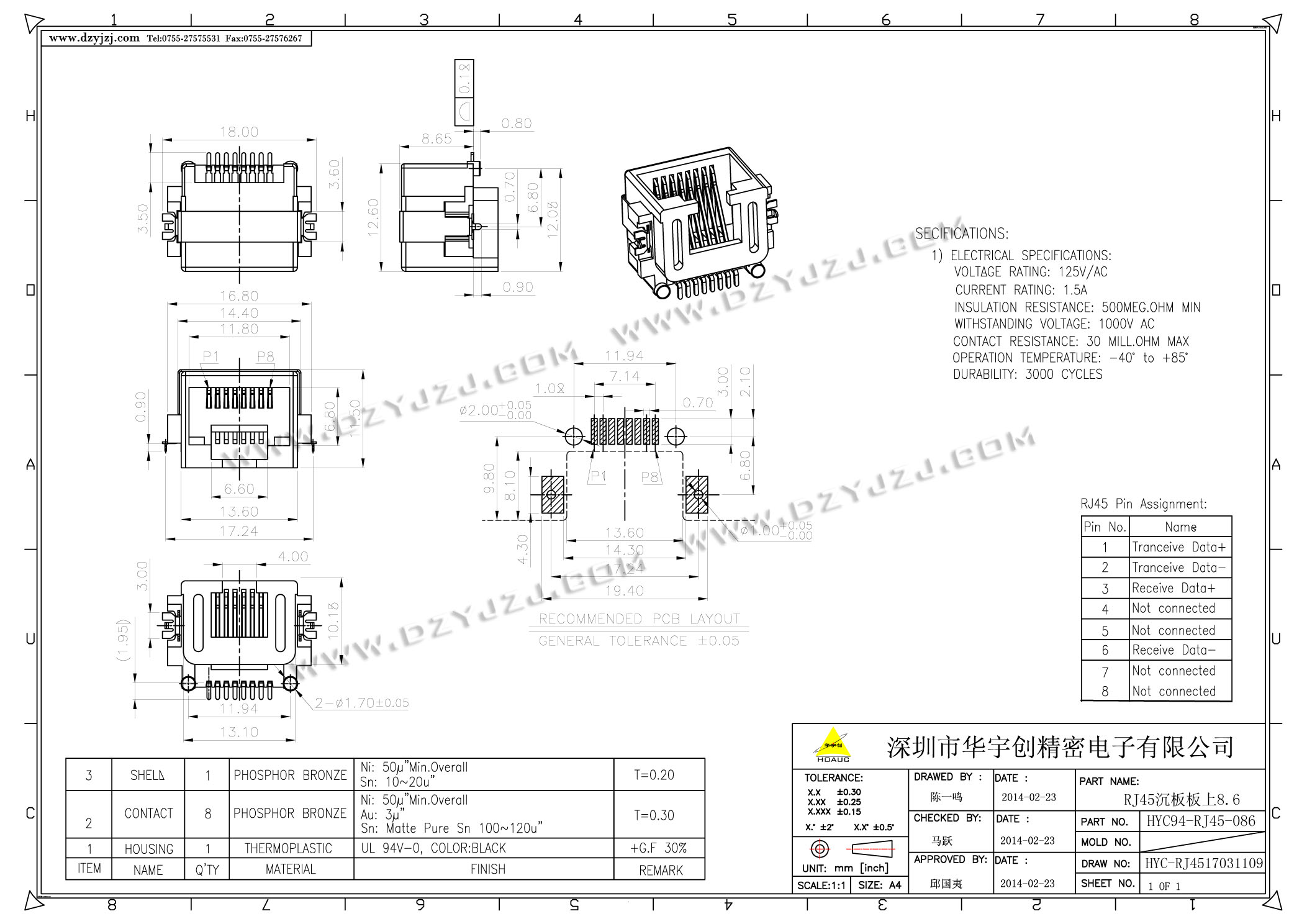 首页 > 分类目录 > RJ45 > RJ45沉板板上8.6 半包