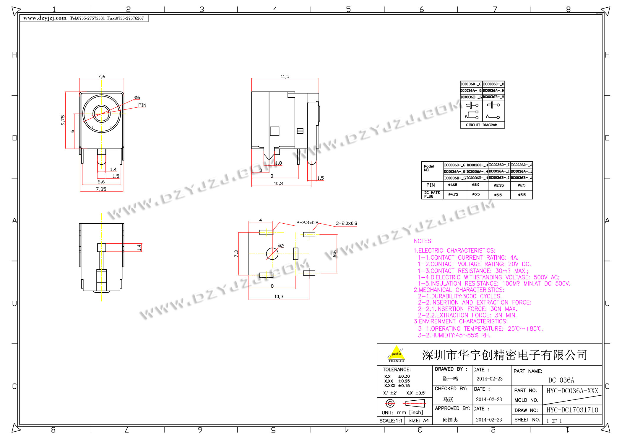 商品料号 HYC-DC036A-XXX