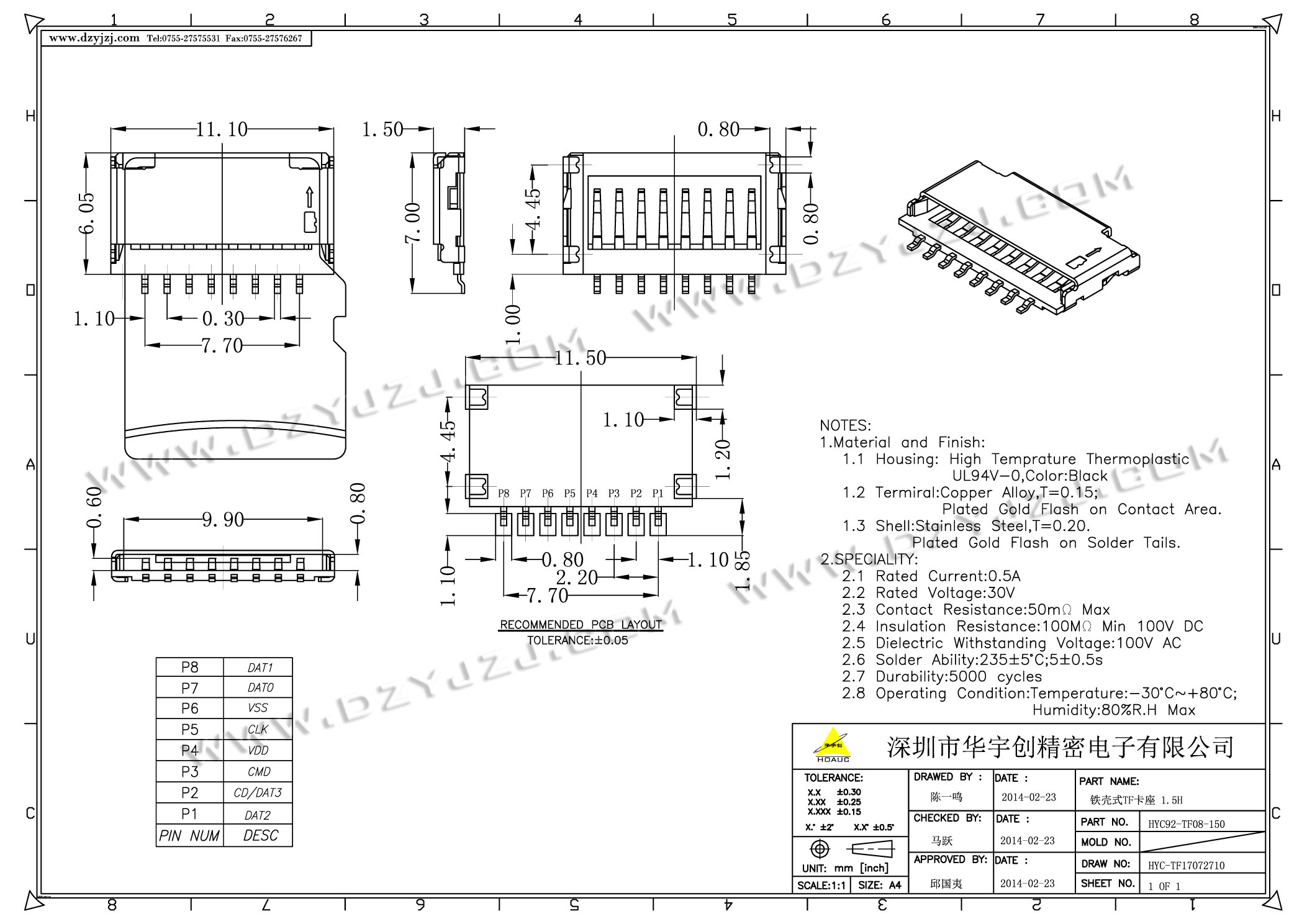 首页 > 分类目录 > TF/MICRO SD卡座 > 铁壳式TF卡座1.5H