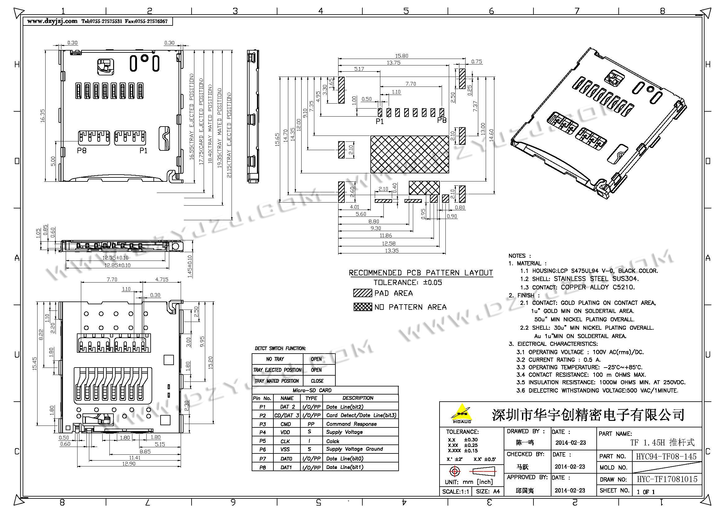 首页 > 分类目录 > TF/MICRO SD卡座 > TF 1.45H 推杆式