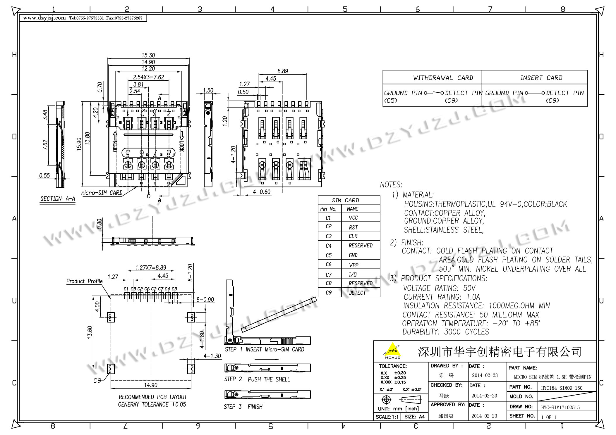 | 商品料号 | HYC184-SIM09-150 |