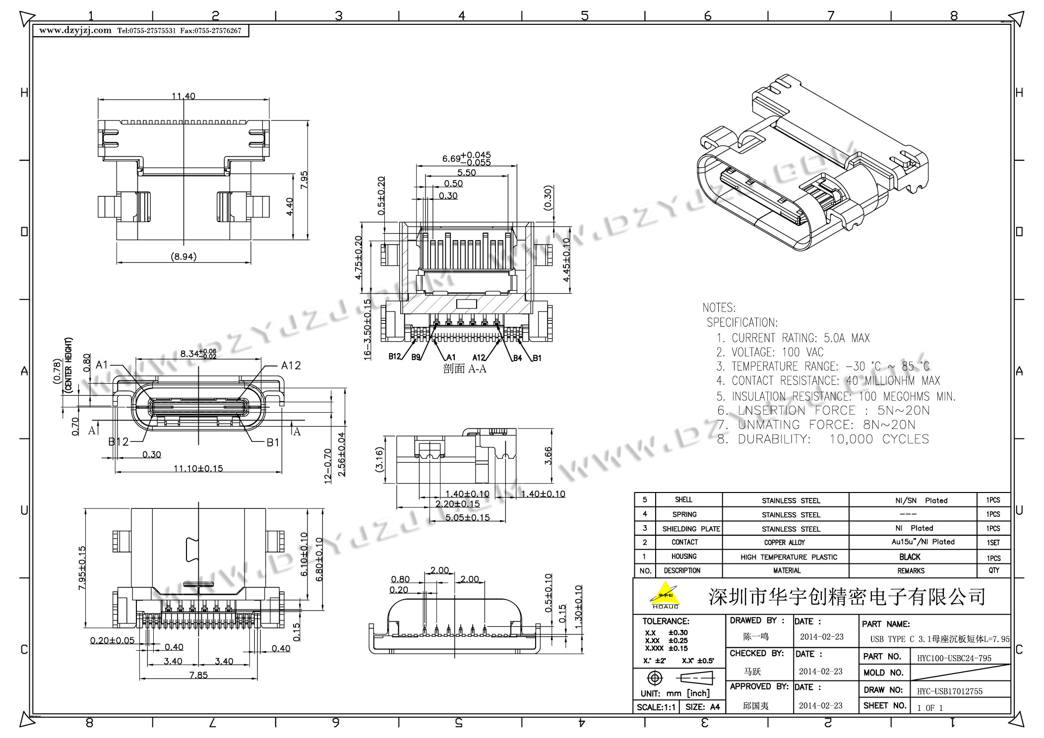 | 商品料号 | HYC100-USBC24-795 |