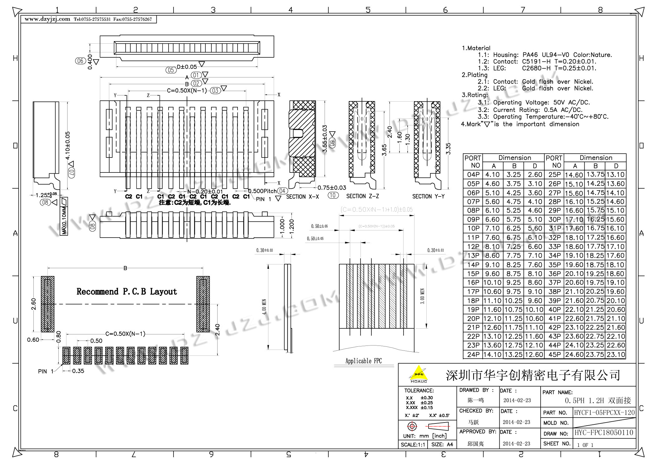 | 商品料号 | HYCF1-05FPCXX-120 |