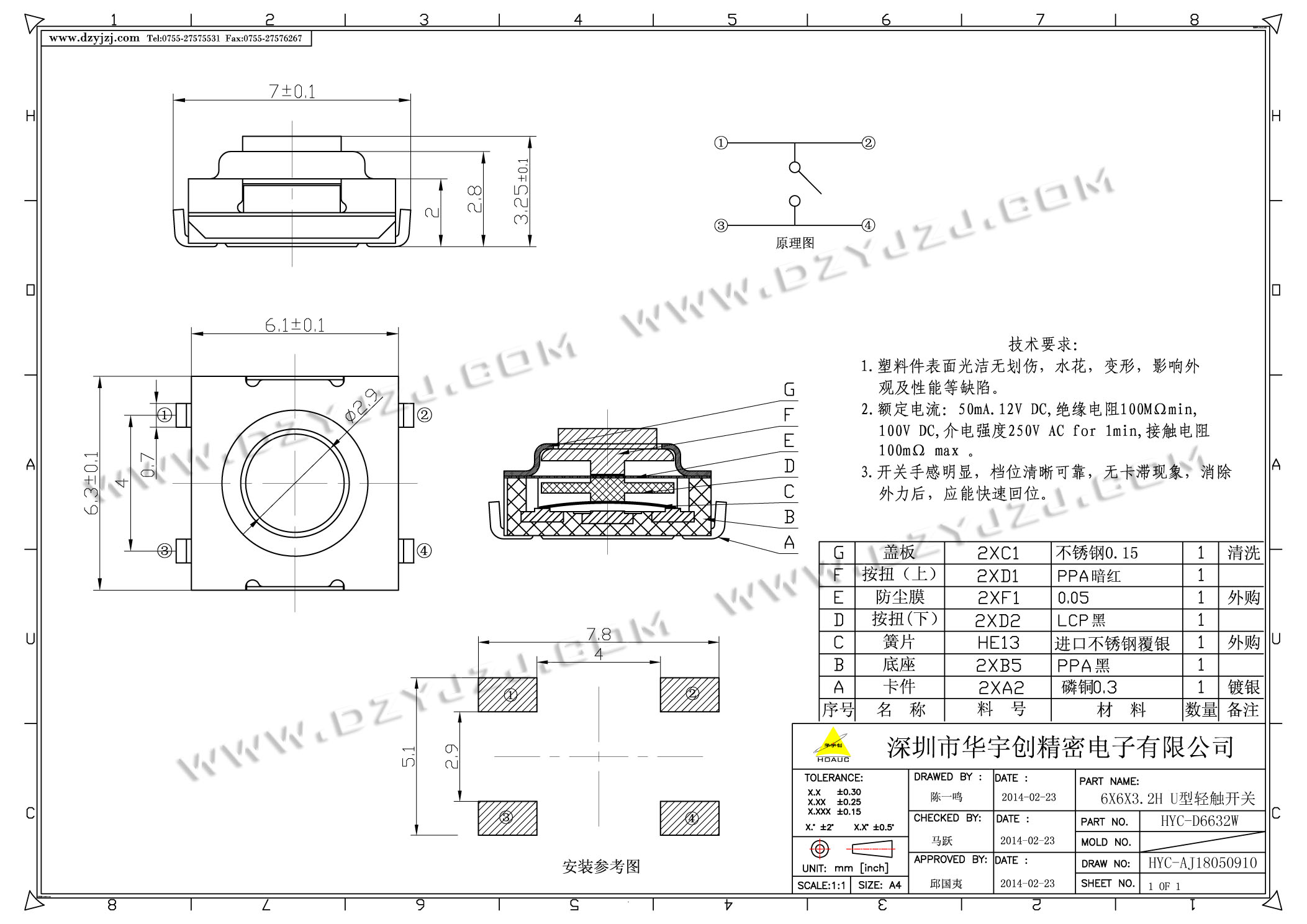 首页 > 分类目录 > 轻触开关 > 6X6X3.2H U型轻触开关