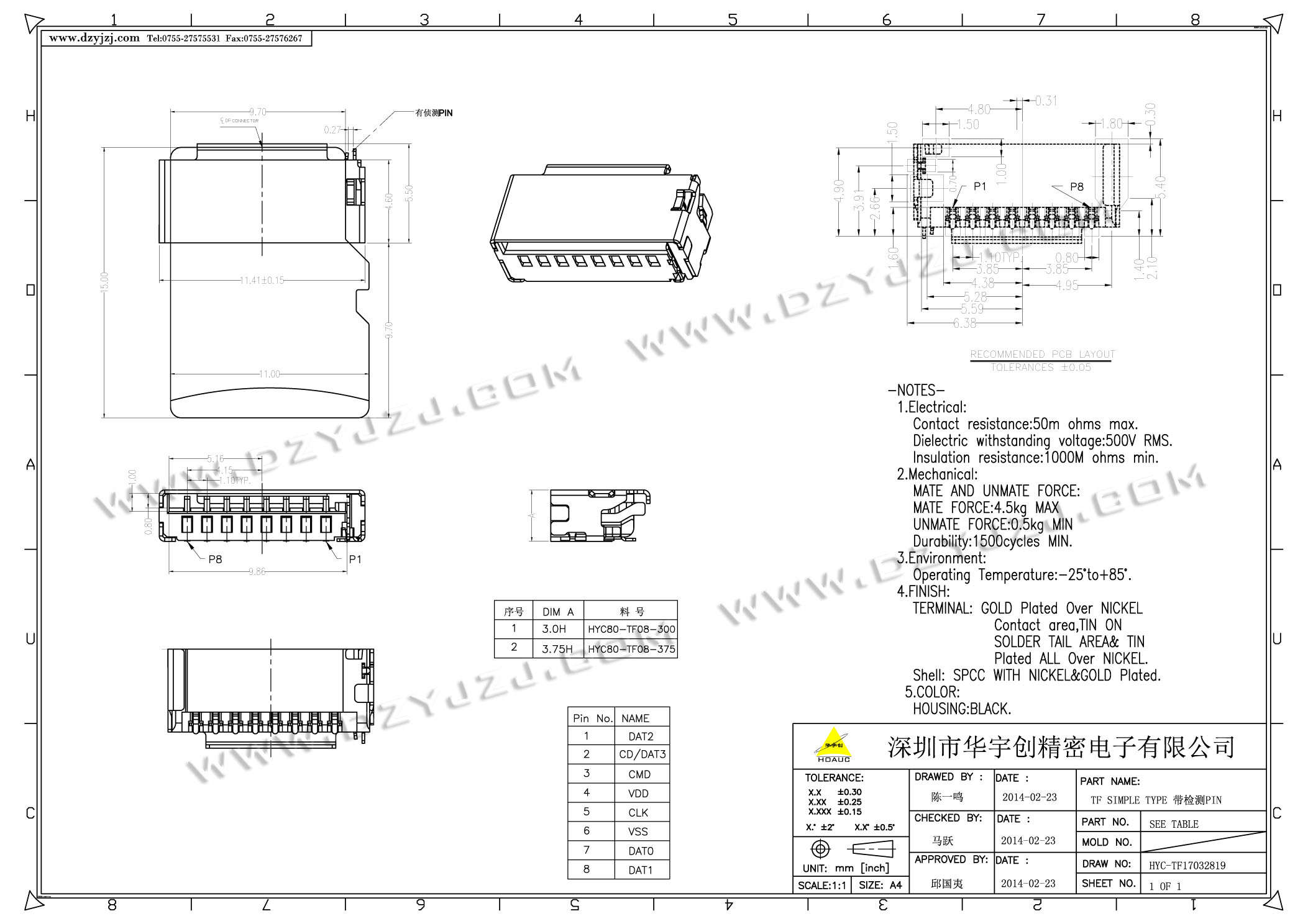 首页 > 分类目录 > TF/MICRO SD卡座 > TF 短体带检测PIN