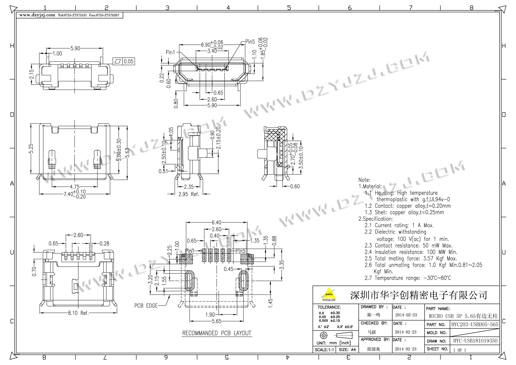 | 商品料号 | HYC203-USBD05-565 |