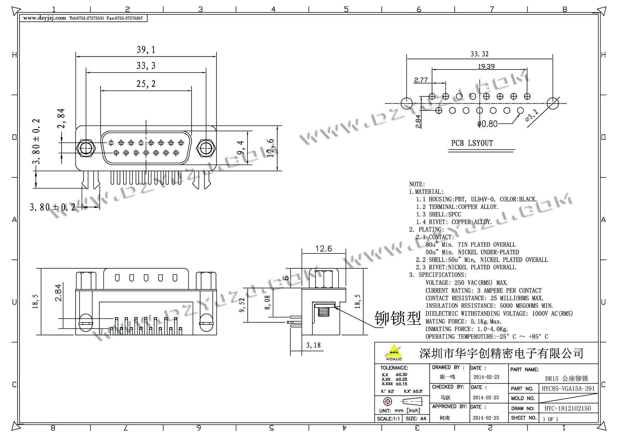 商品料号 HYC85-VGA15A-391