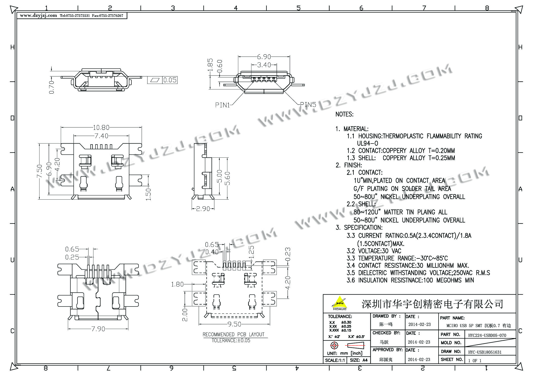 | 商品料号 | HYC224-USBD05-070 |