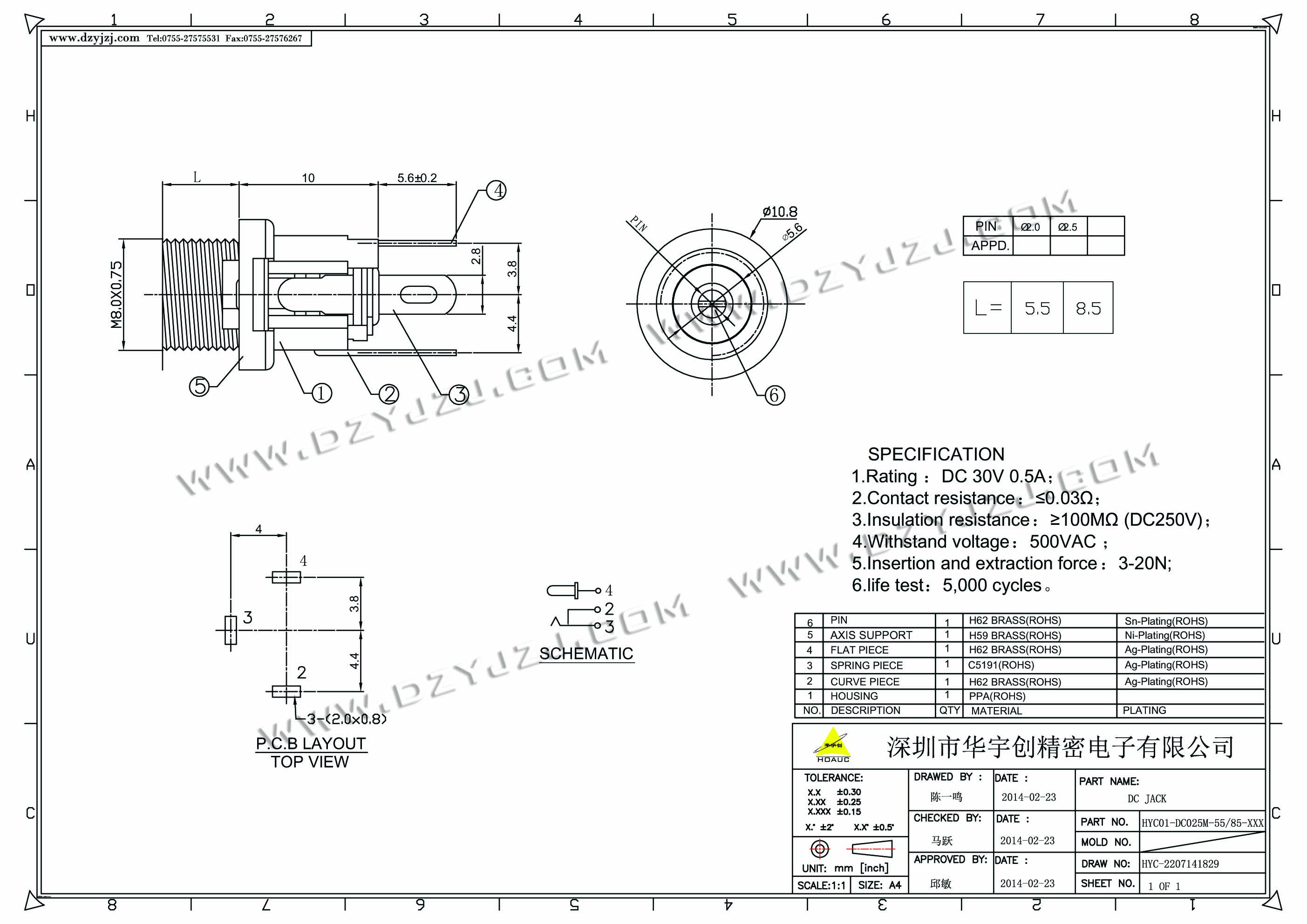 | 商品料号 | HYC01-DC025M-55/85-XXX |