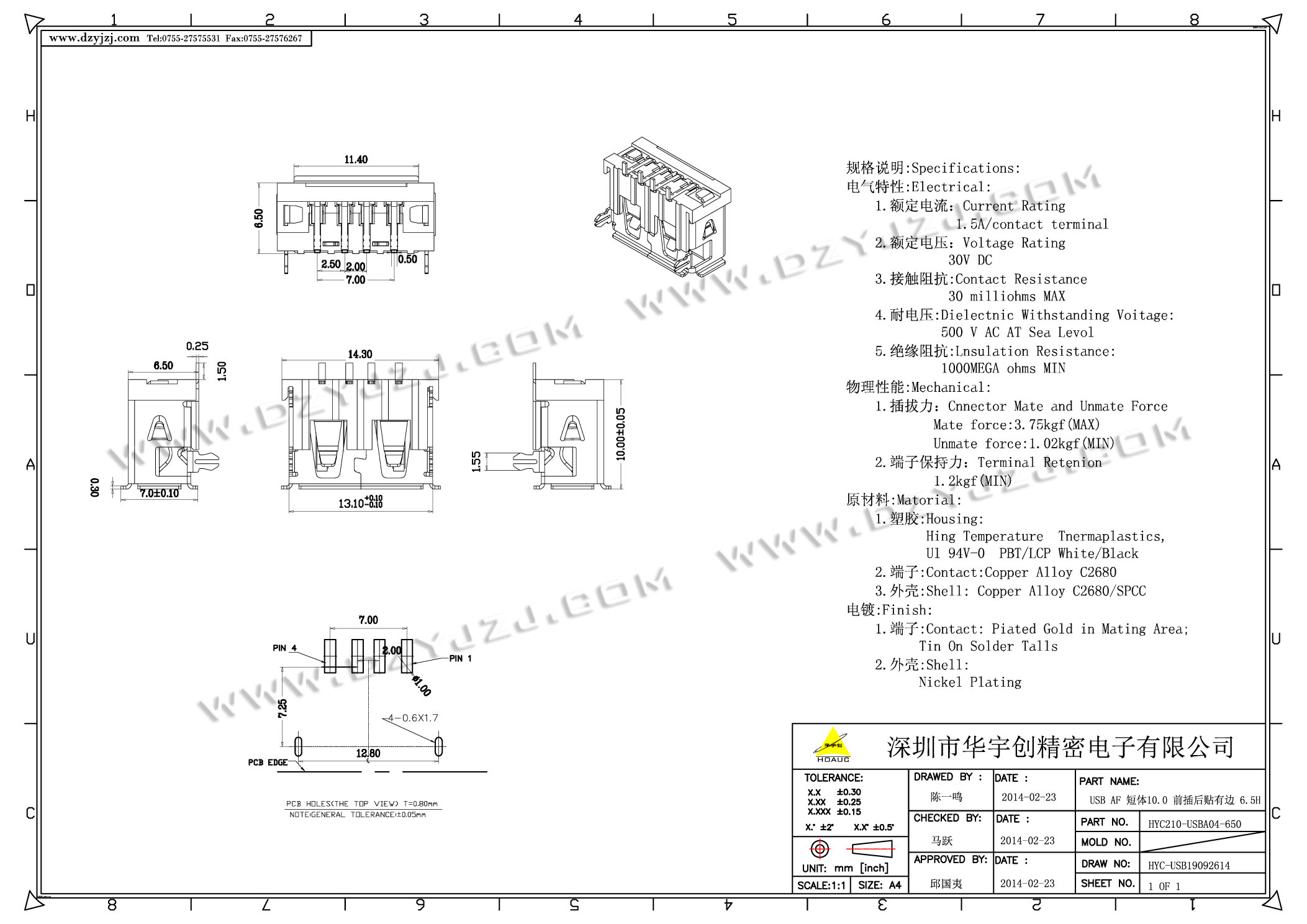| 商品料号 | HYC210-USBA04-650 |