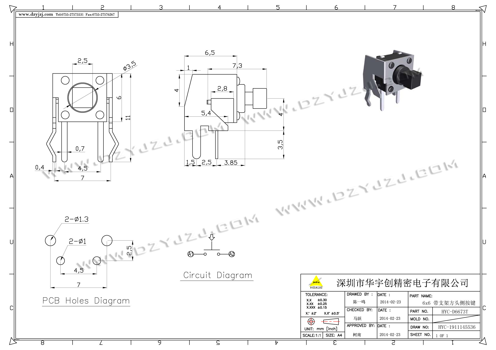 首页 > 分类目录 > 轻触开关 > 6X6 带支架方头侧按键