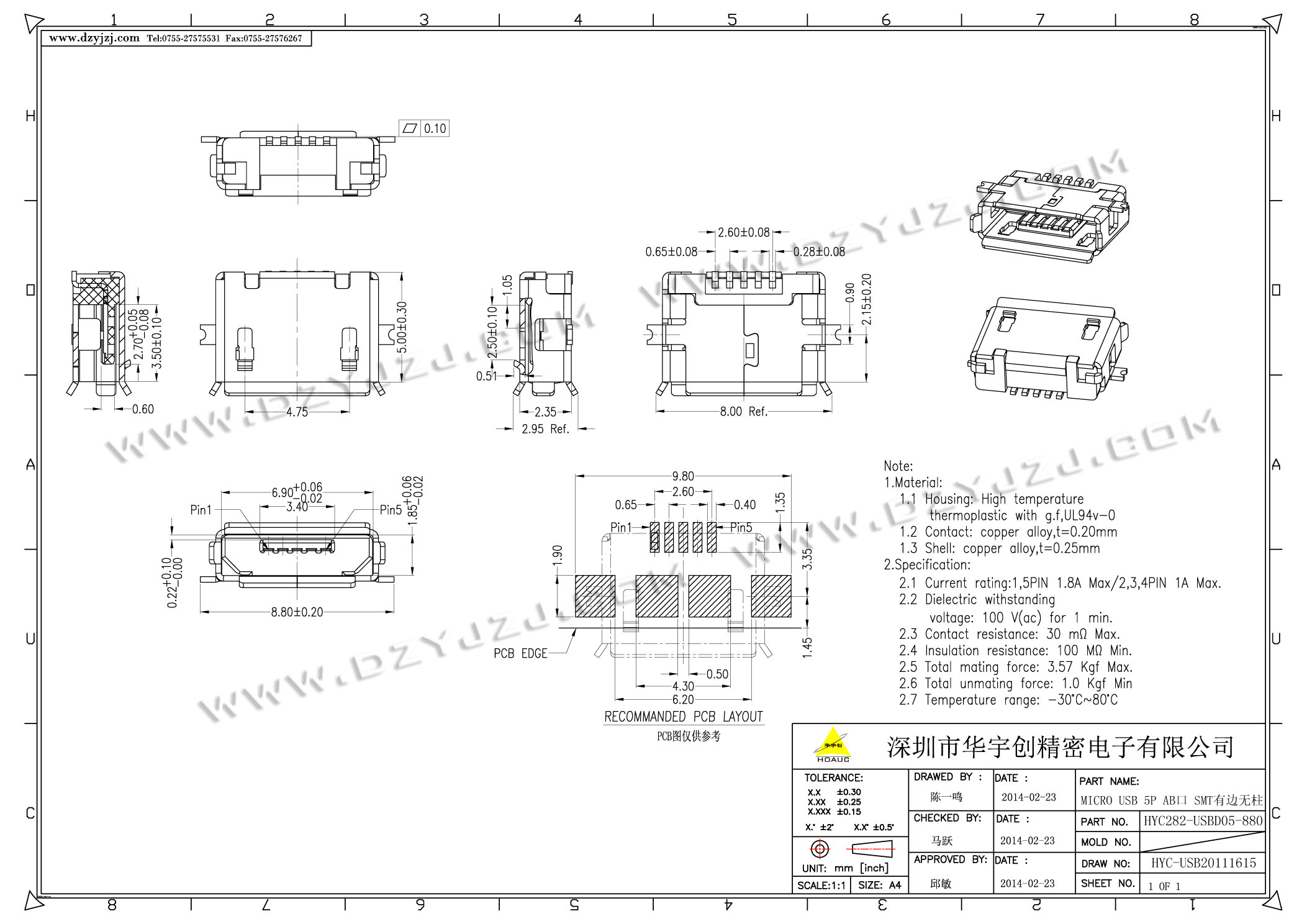 | 商品料号 | HYC282-USBD05-880 |