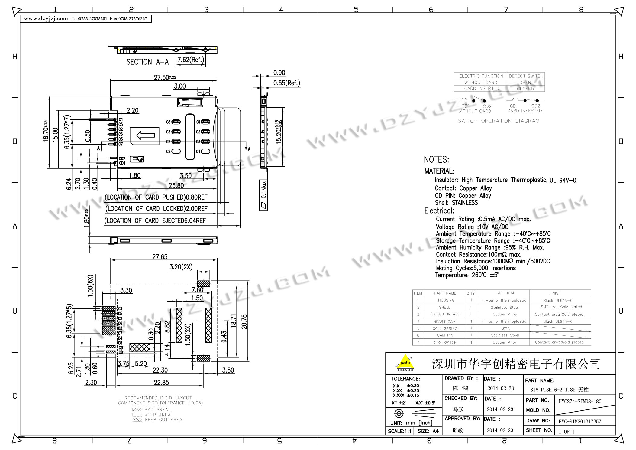 | 商品料号 | HYC274-SIM08-180 |