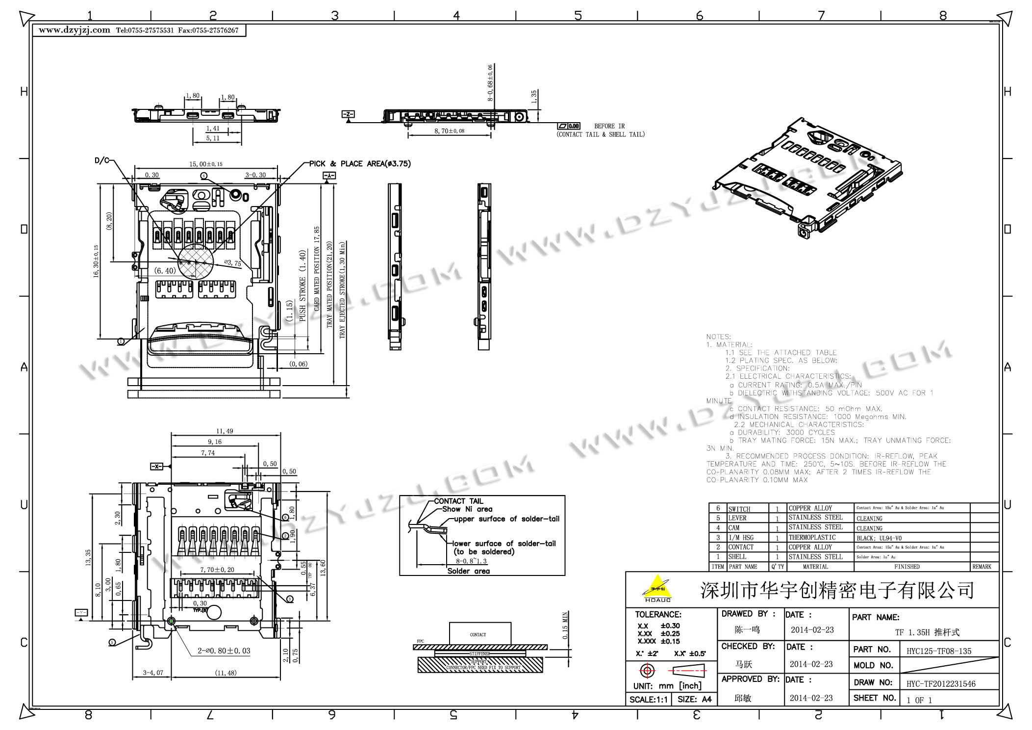 首页 > 分类目录 > TF/MICRO SD卡座 > TF 1.35H 推杆式带柱