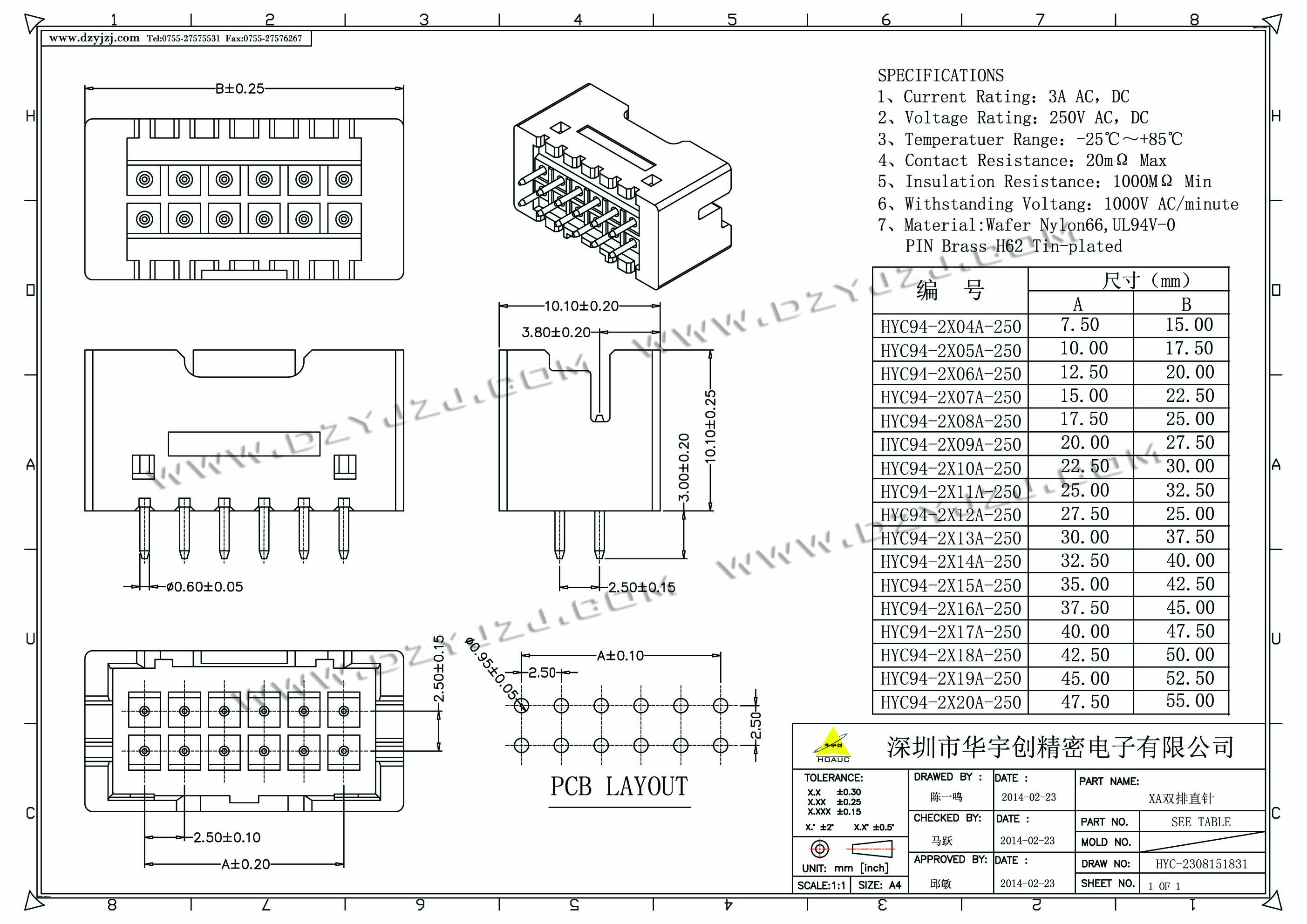 首页 > 分类目录 > 2.5PH/2.54PH > XA双排直针