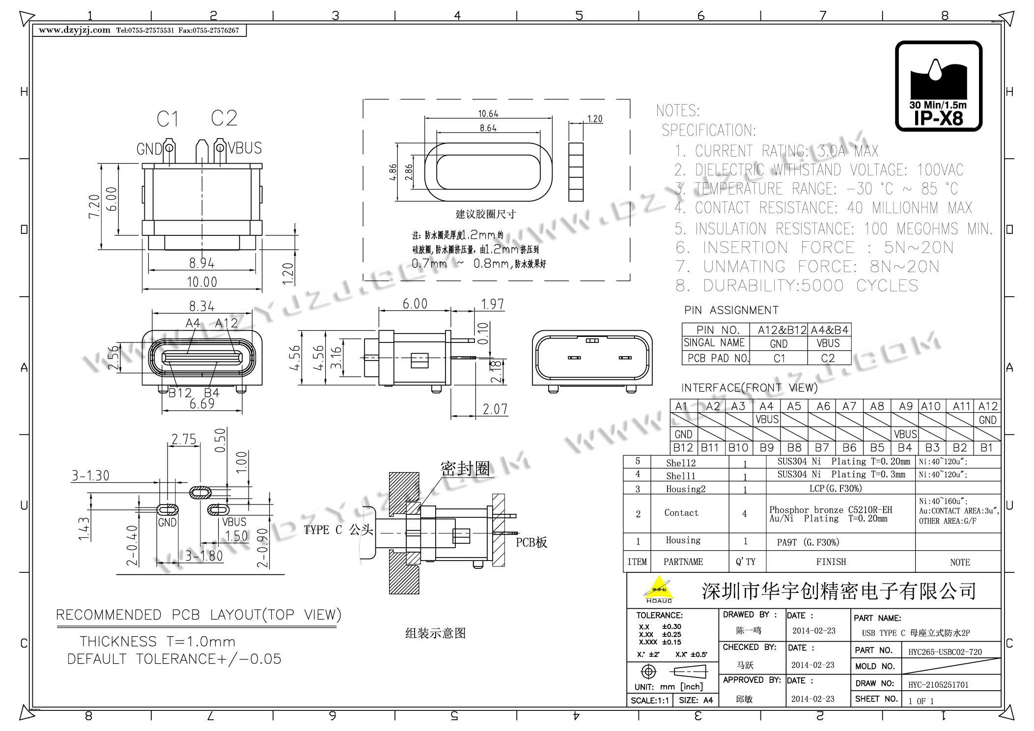 | 商品料号 | HYC265-USBC02-720 |