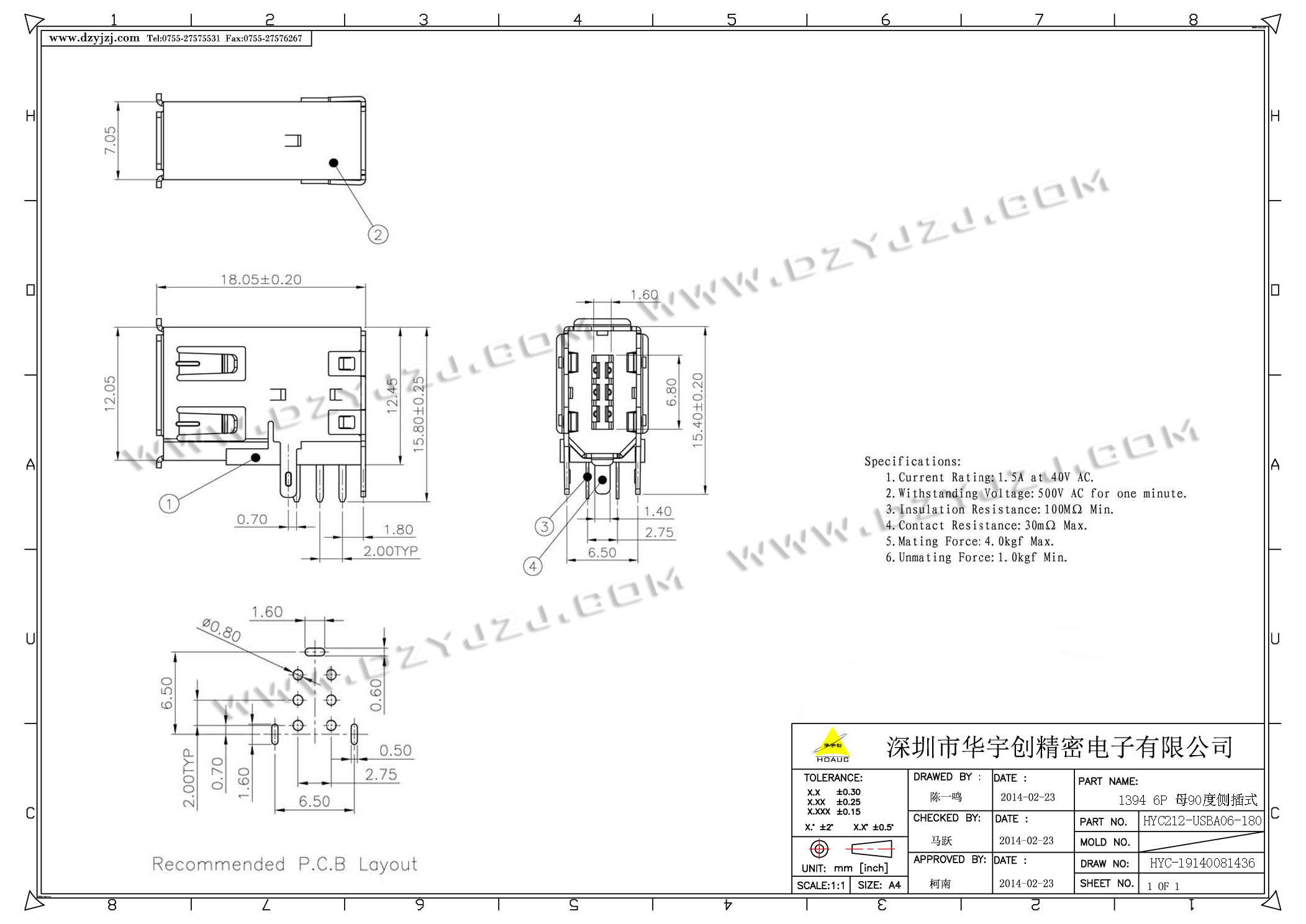 | 商品料号 | HYC212-USBA06-180 |