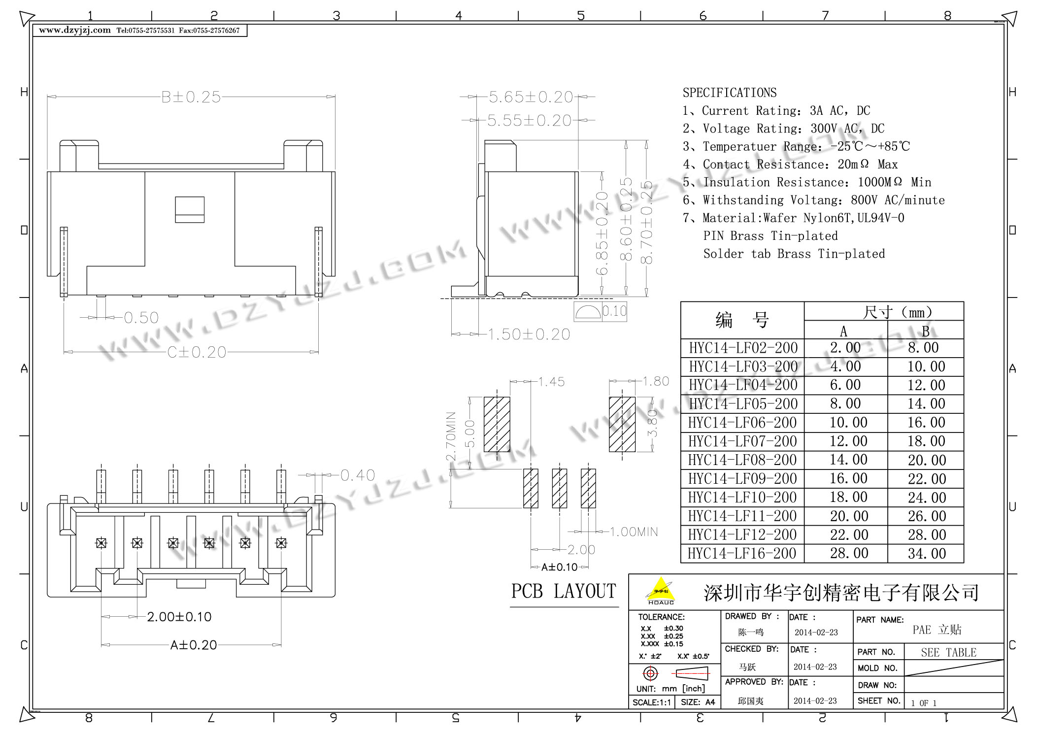 商品料号 HYC14-LFN-200