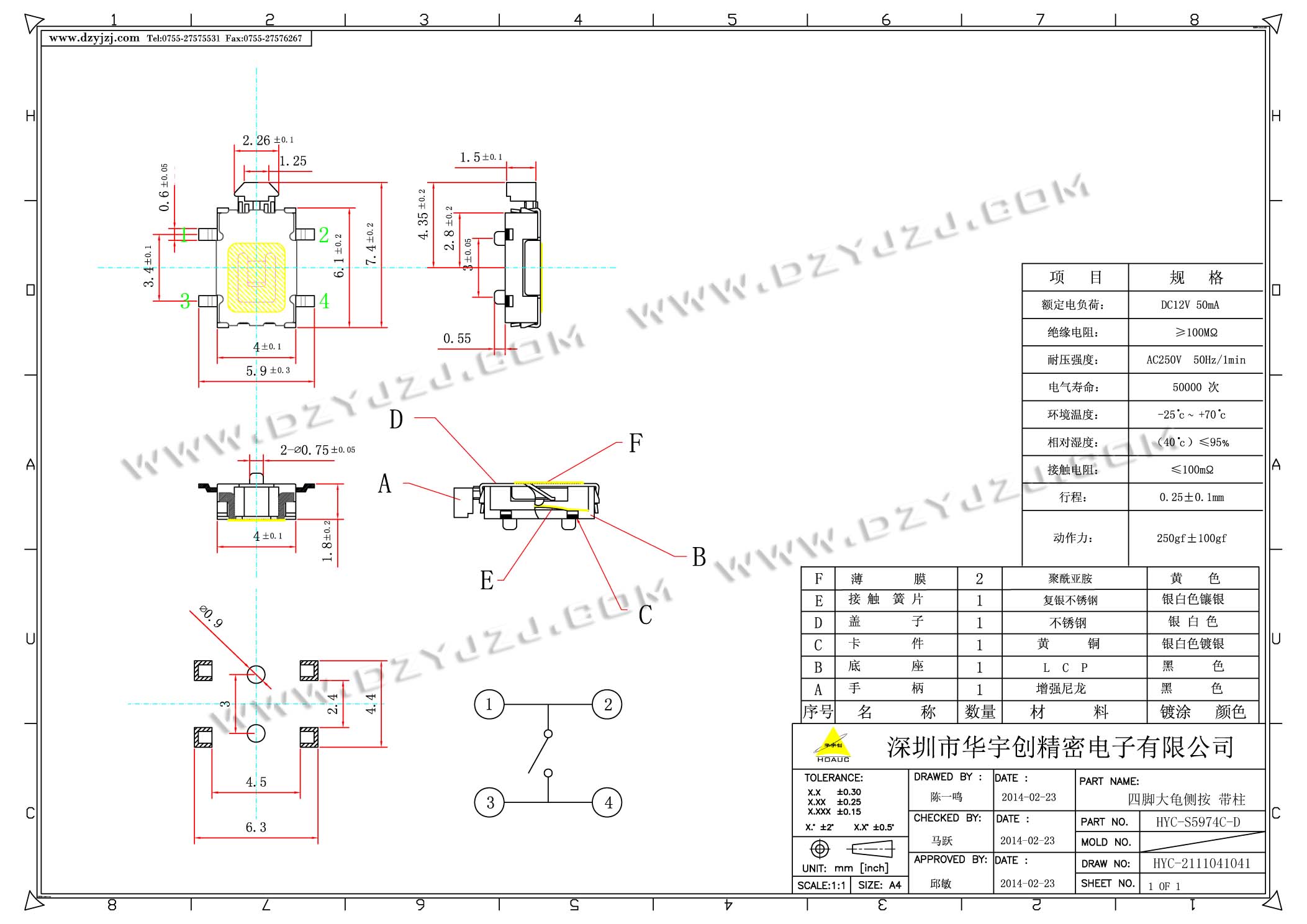 首页 > 分类目录 > 轻触开关 > 四脚大龟侧按 带柱