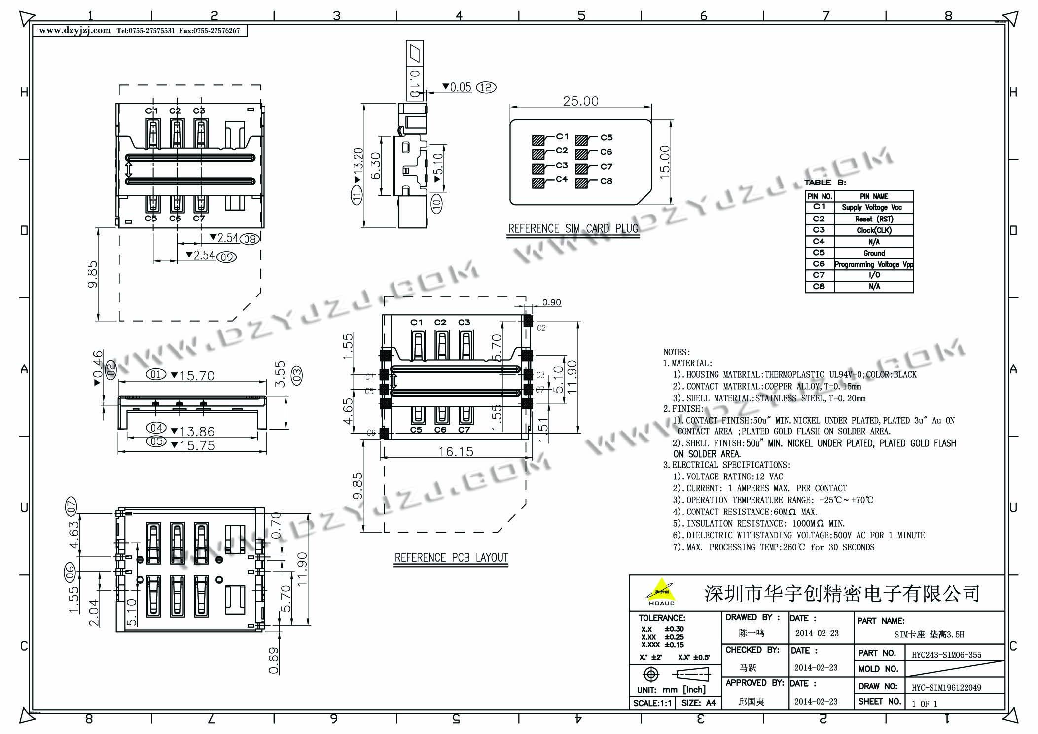 SIM卡座 垫高3.5H