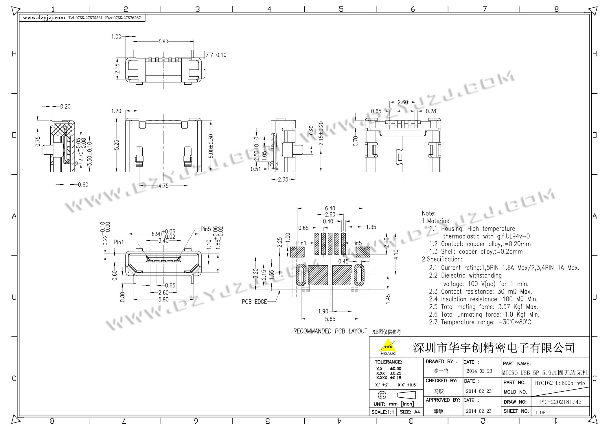 | 商品料号 | HYC162-USBD05-565 |