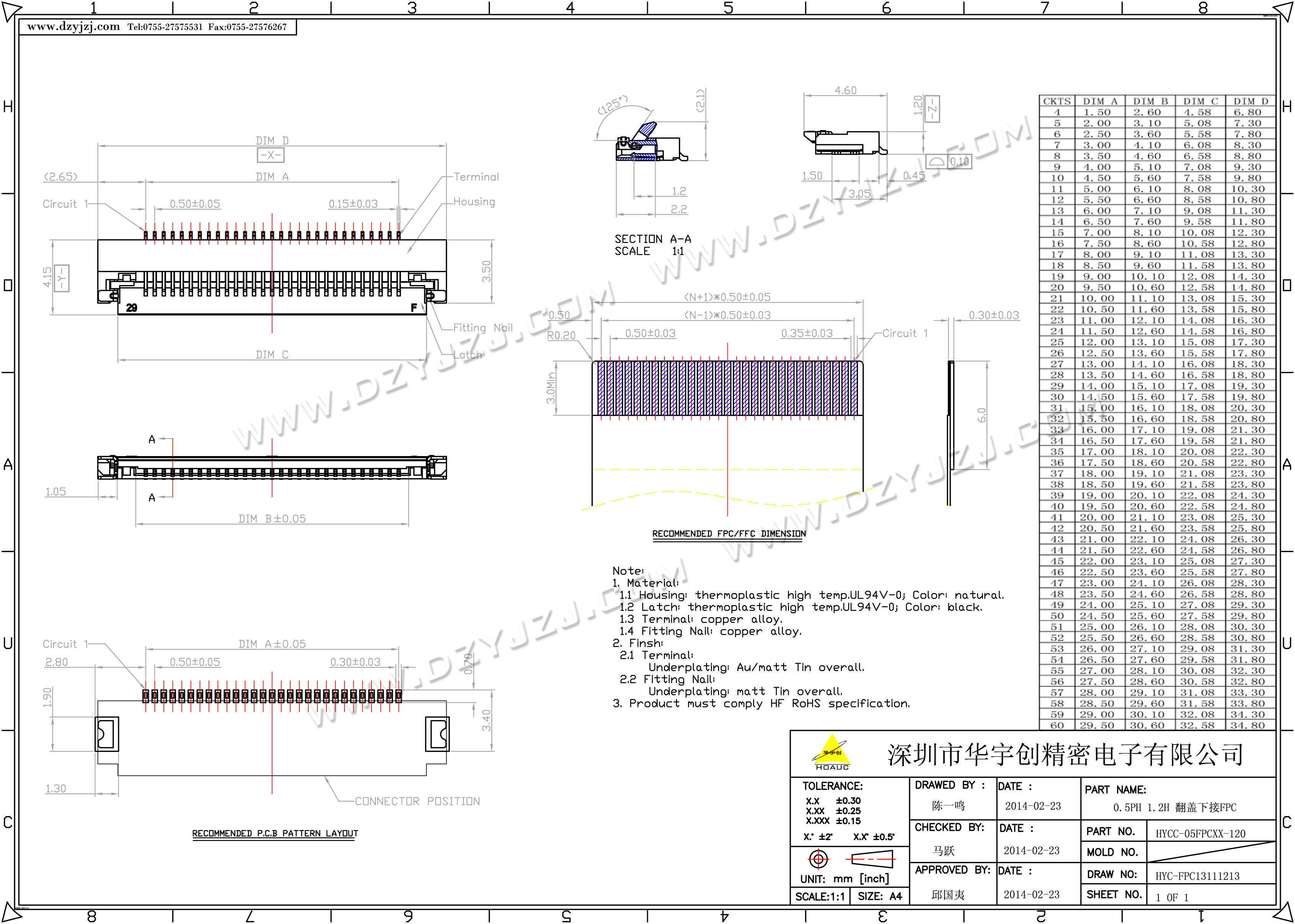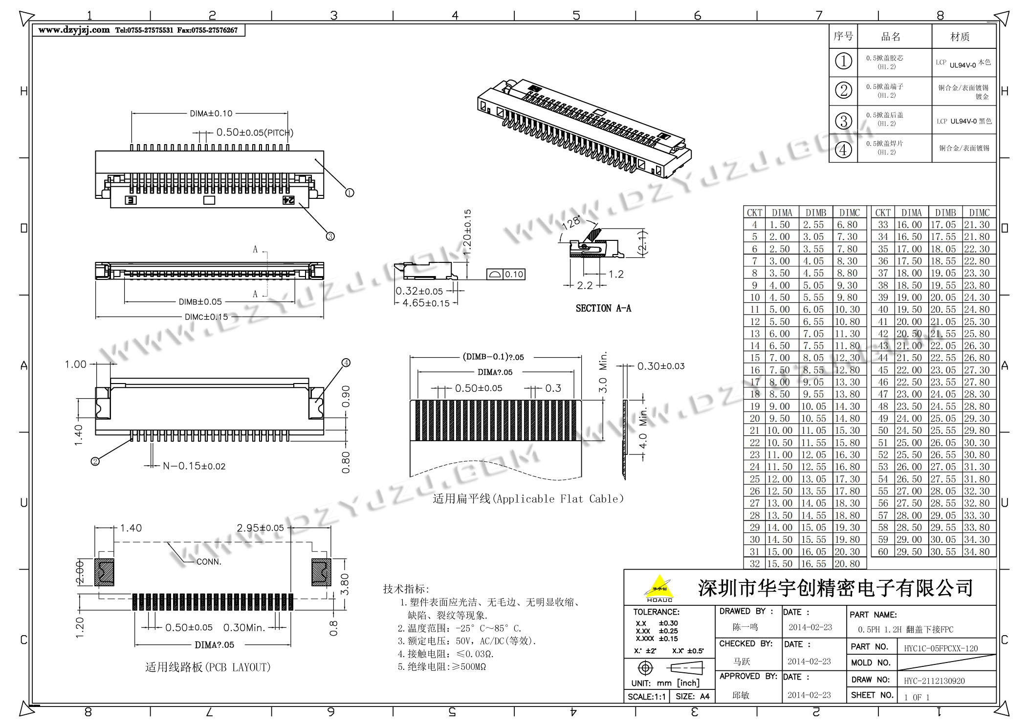 | 商品料号 | HYC1C-05FPCXX-120 |