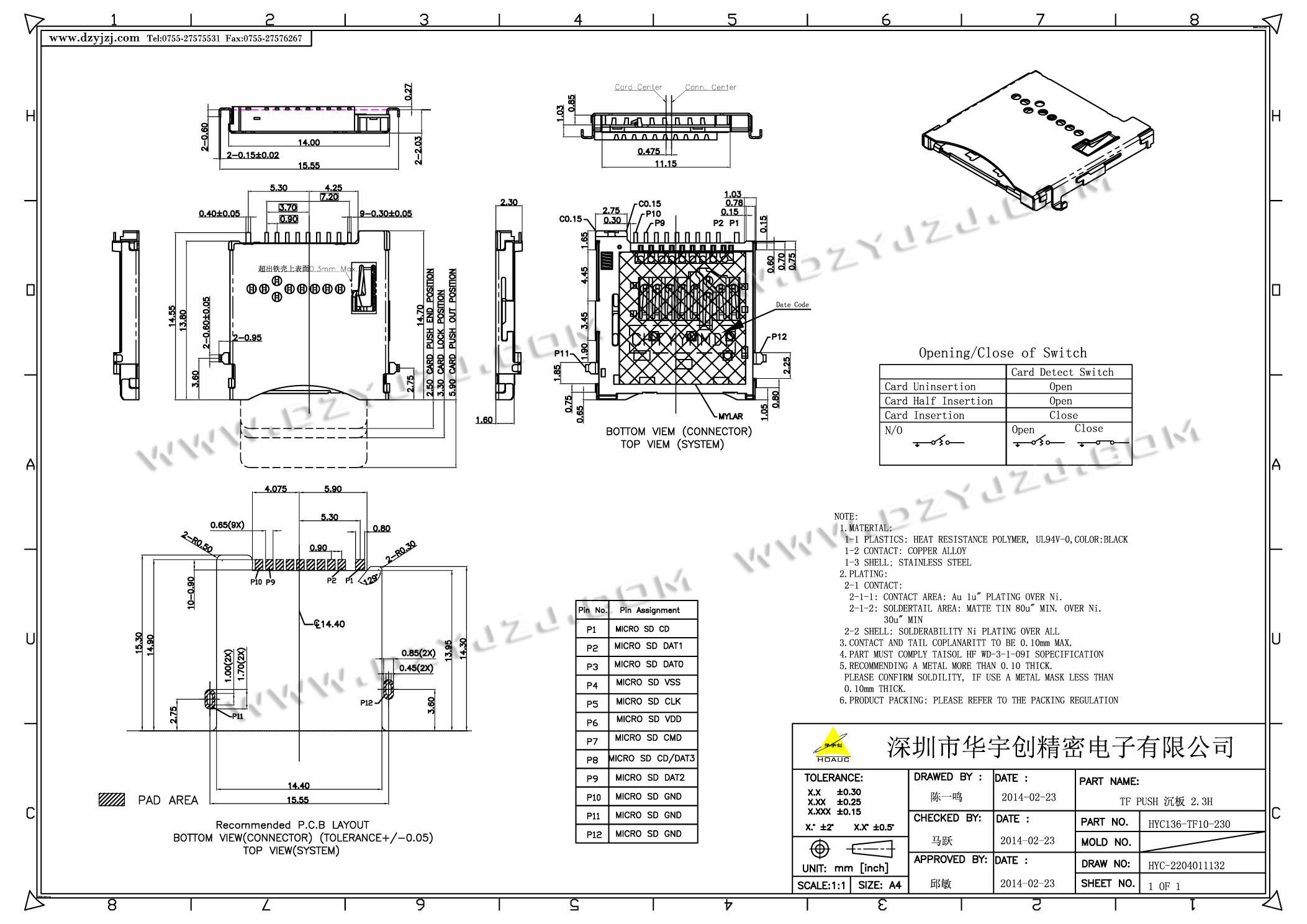 首页 > 分类目录 > TF/MICRO SD卡座 > TF PUSH 沉板 2.3H