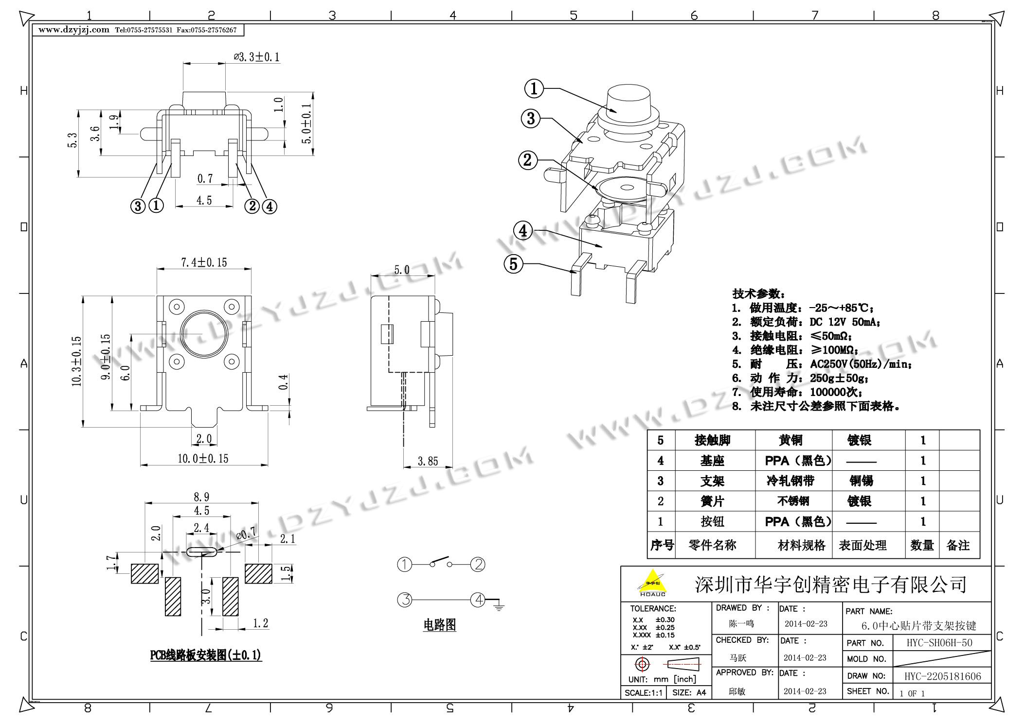 首页 > 分类目录 > 轻触开关 > 6.0中心贴片带支架按键