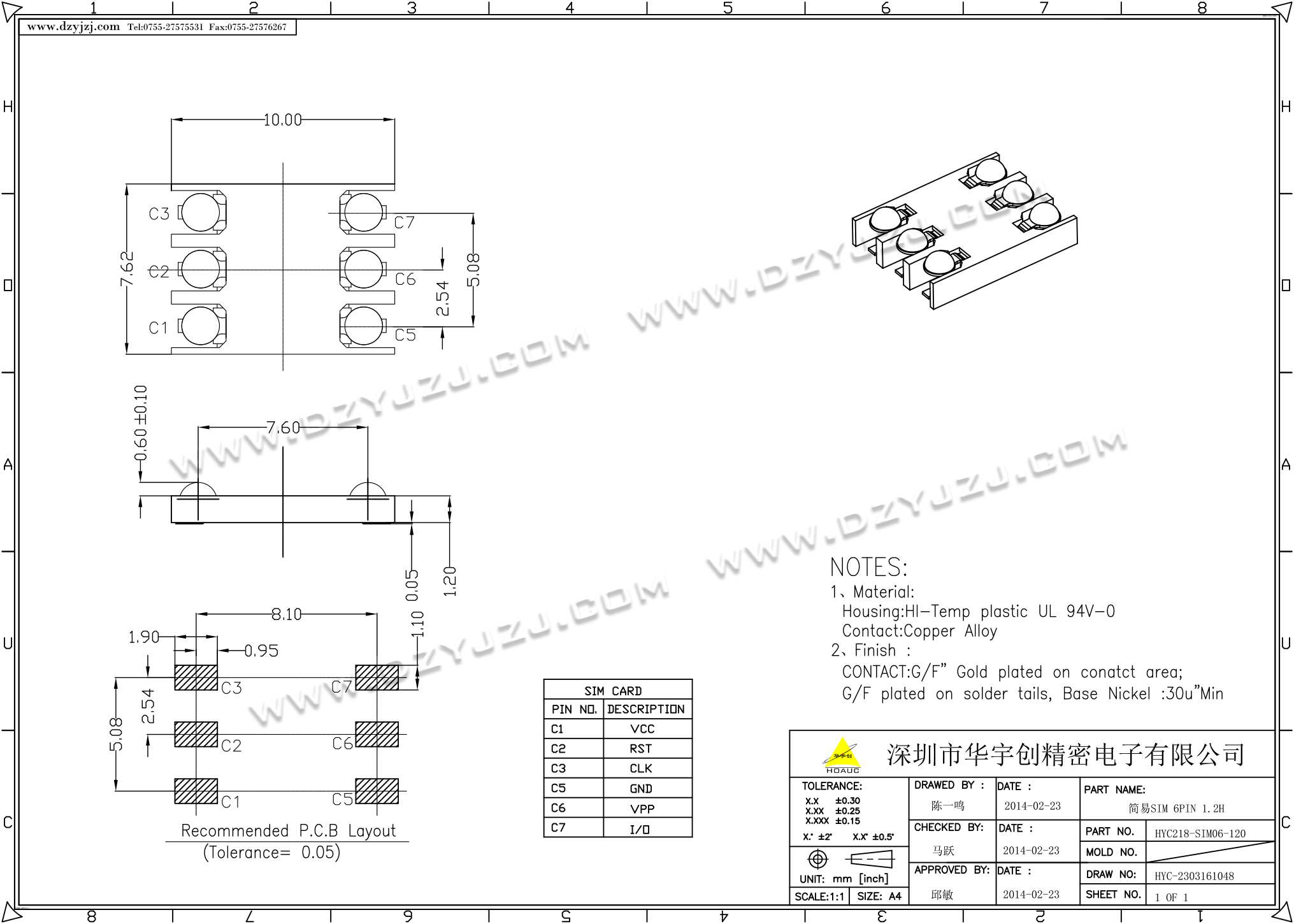 | 商品料号 | HYC218-SIM06-120 |