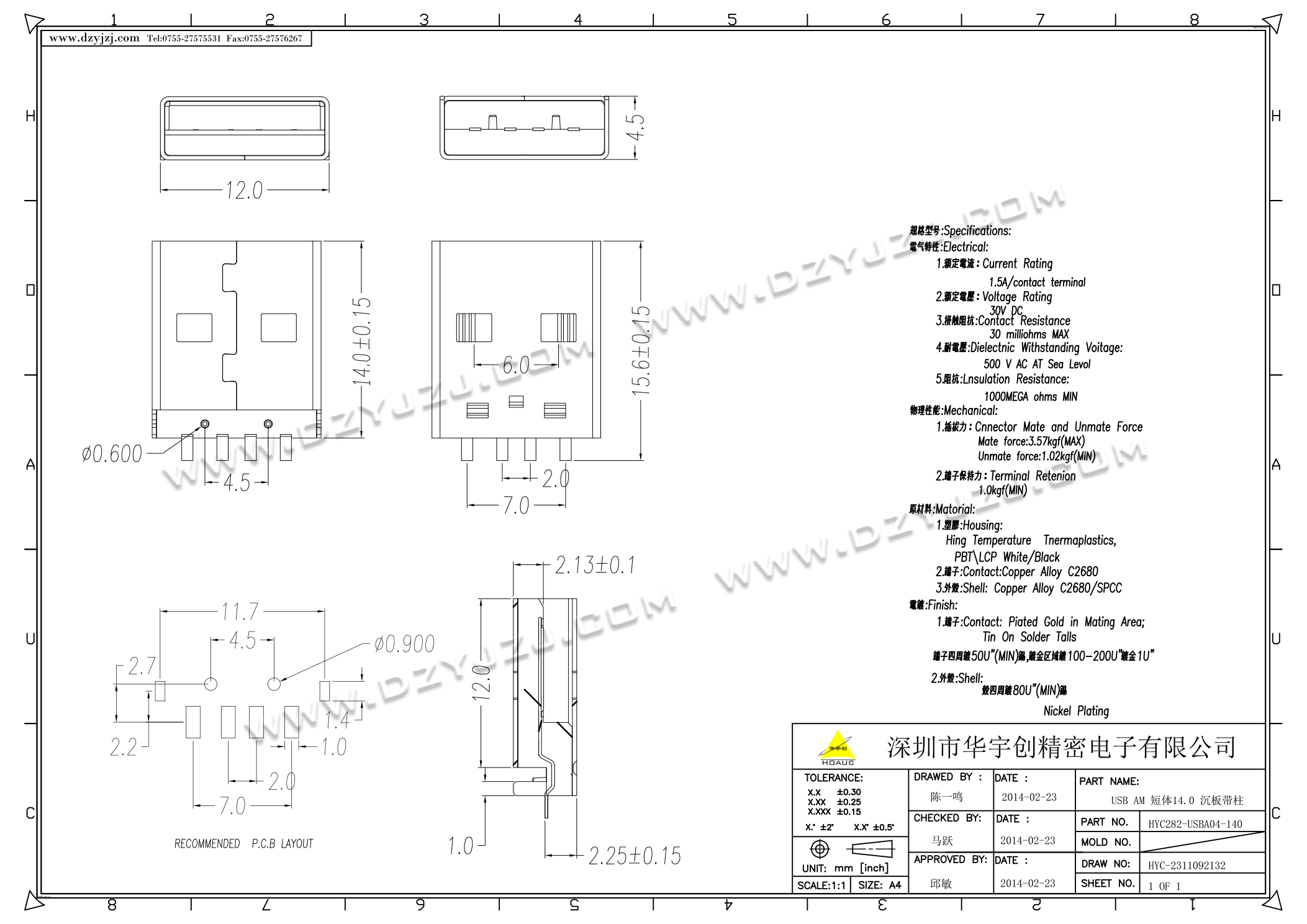 | 商品料号 | HYC282-USBA04-140 |