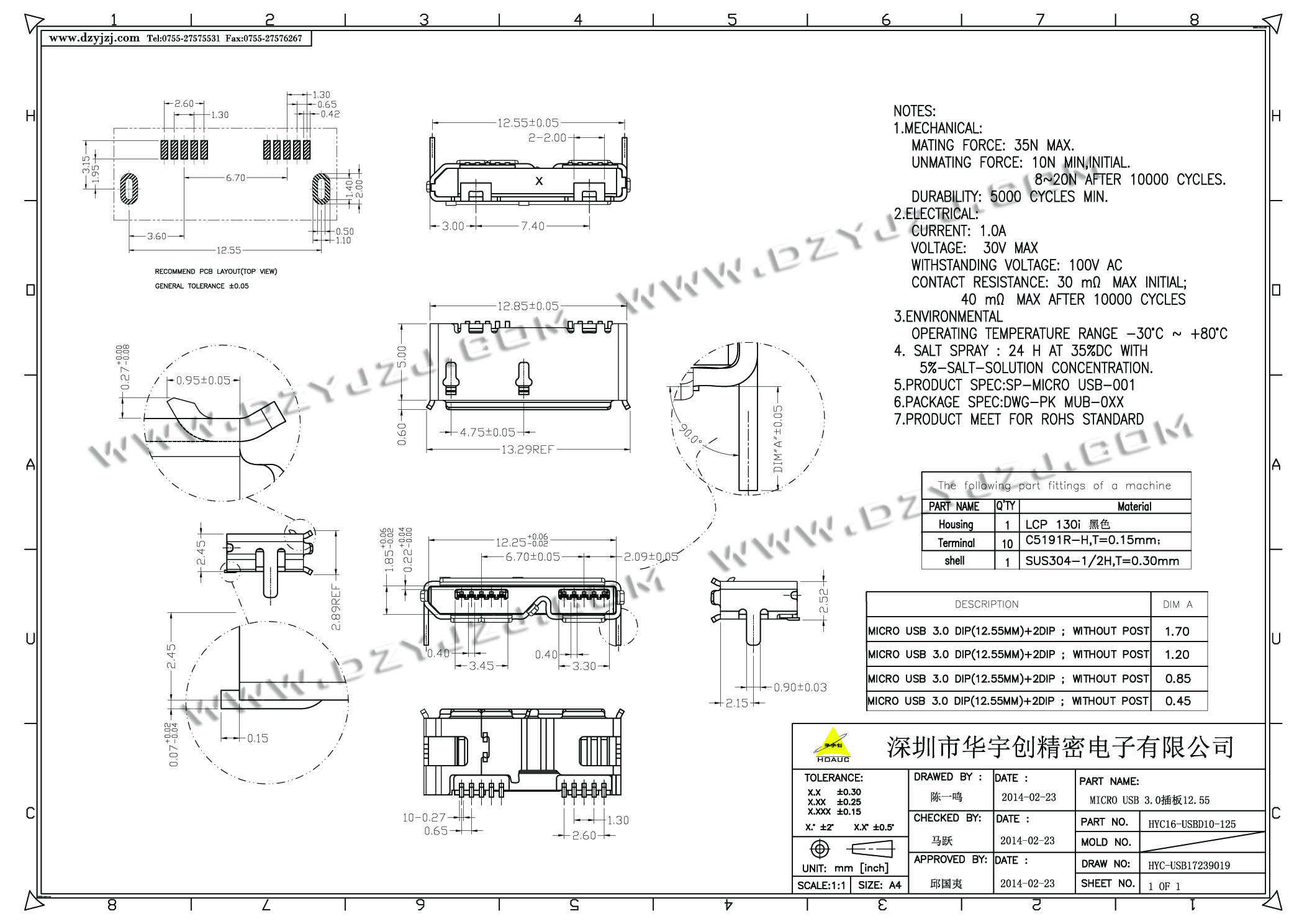 | 商品料号 | HYC19-USBD10-125 |
