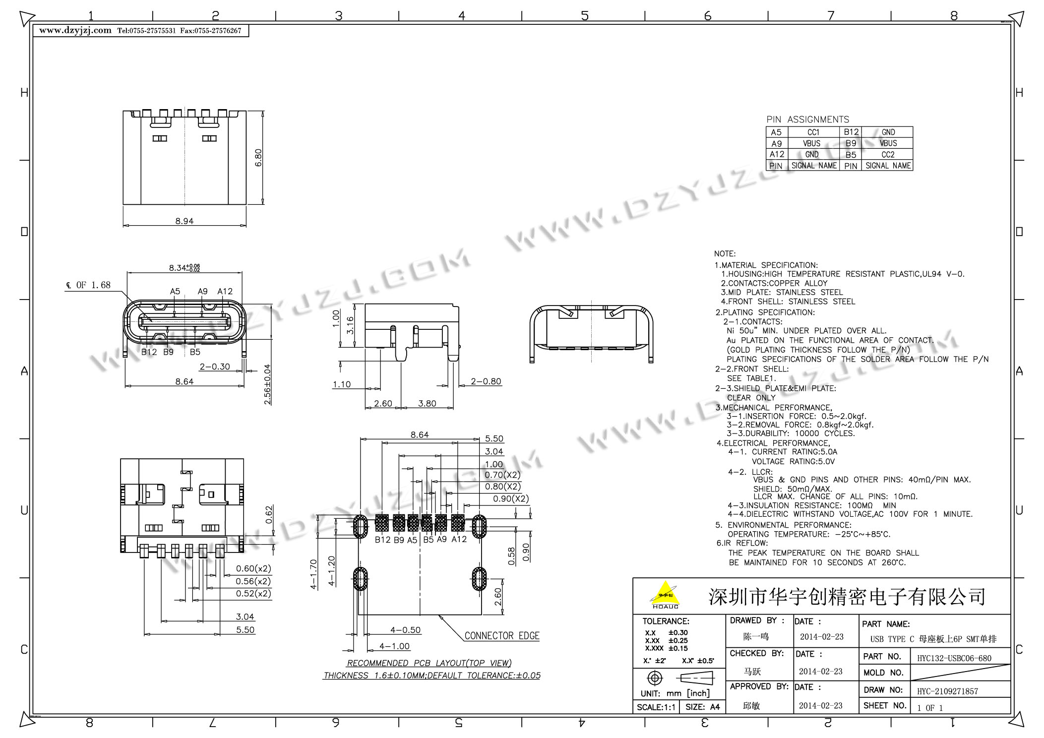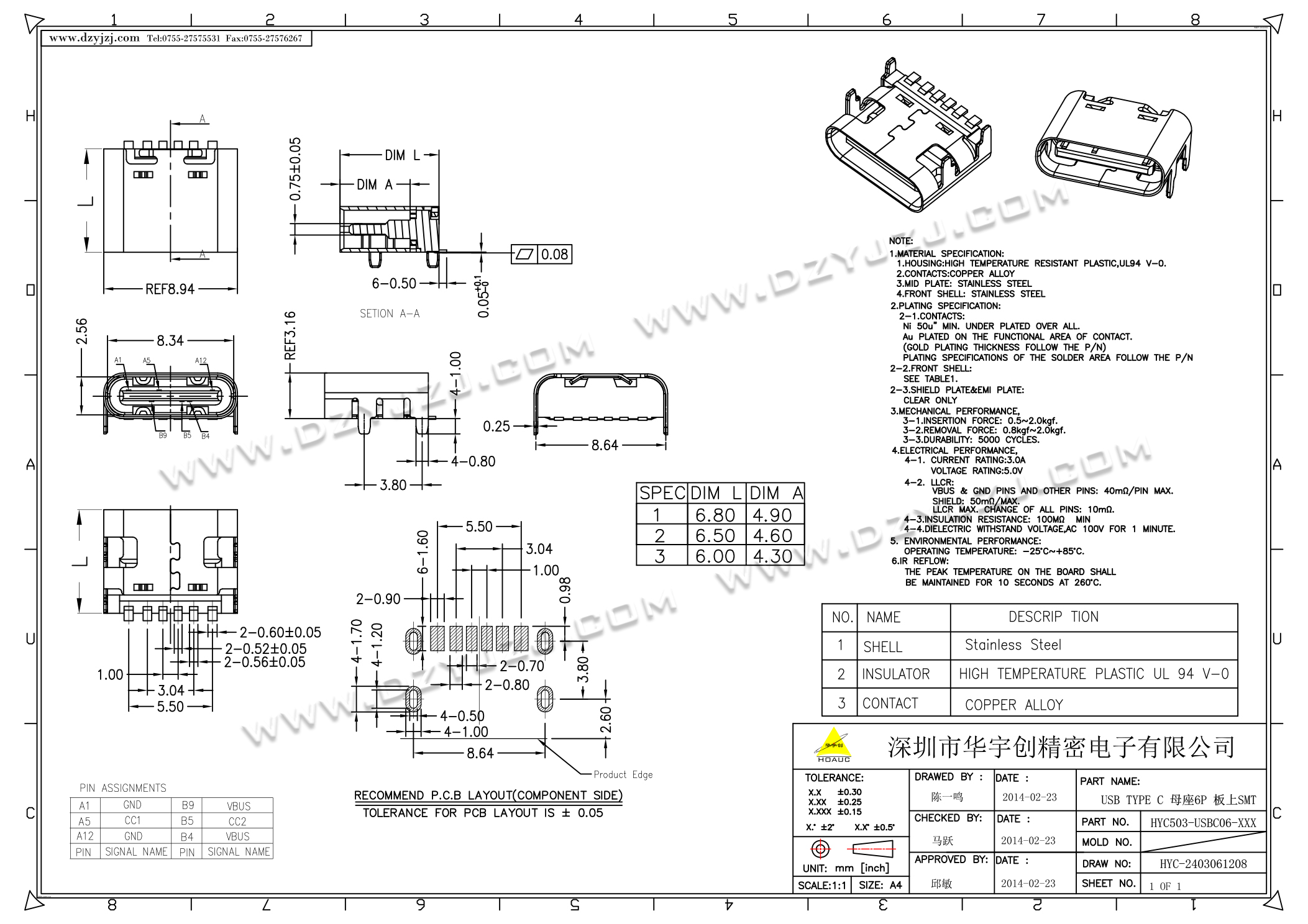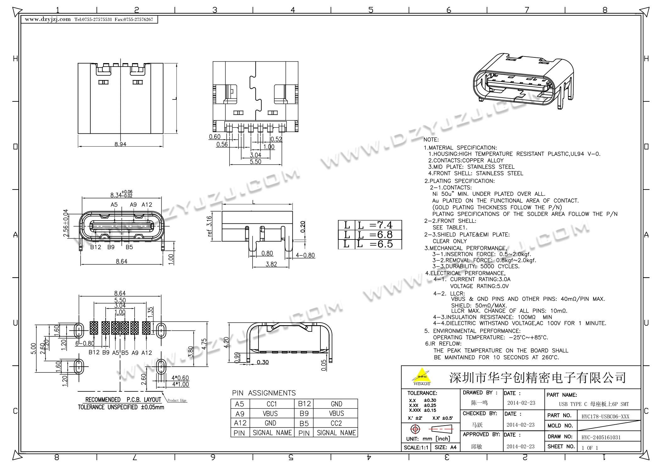 | 商品料号 | HYC668-USBC06-XXX-XX |