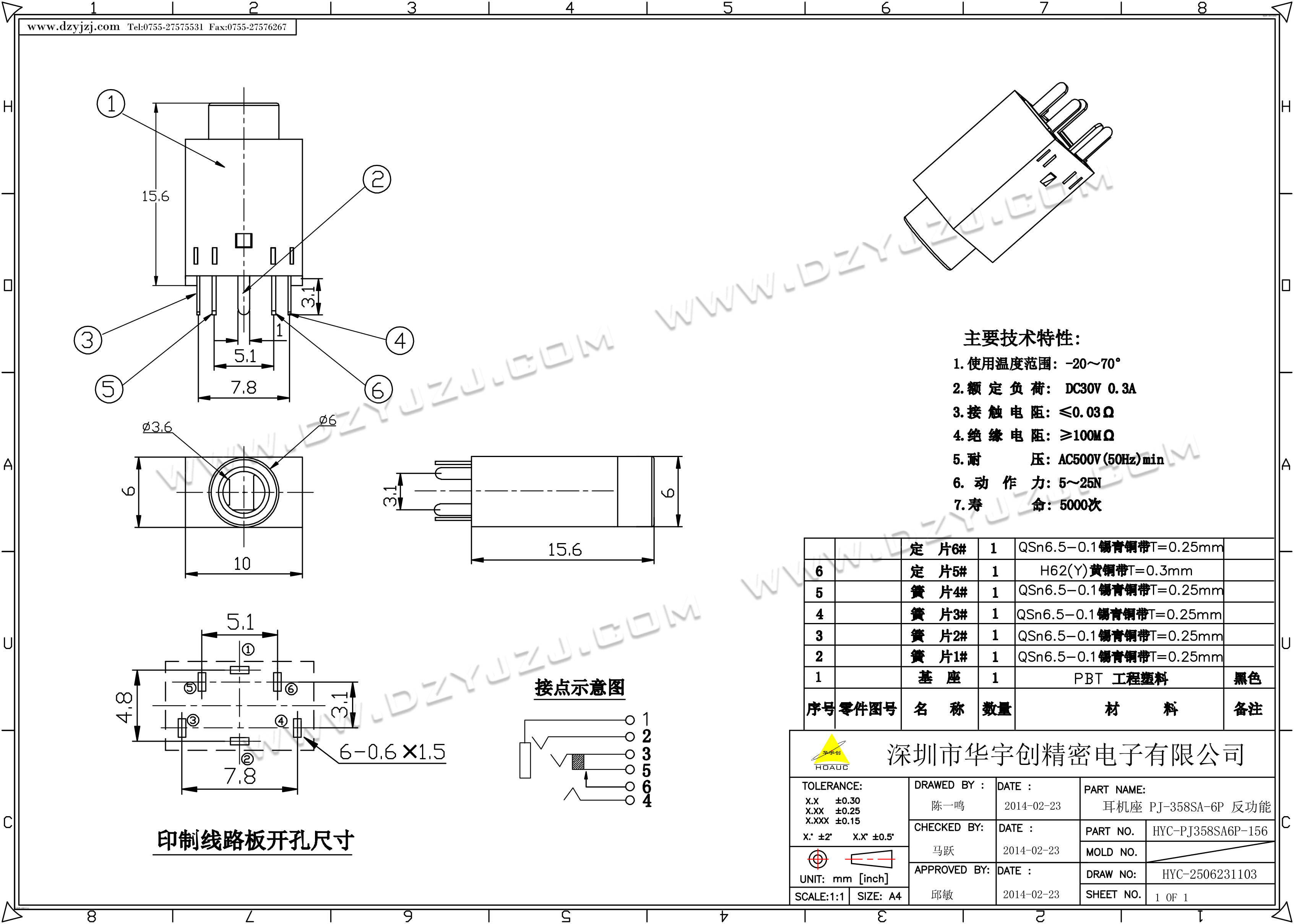 | 商品料号 | HYC-PJ3585A6P-156 |