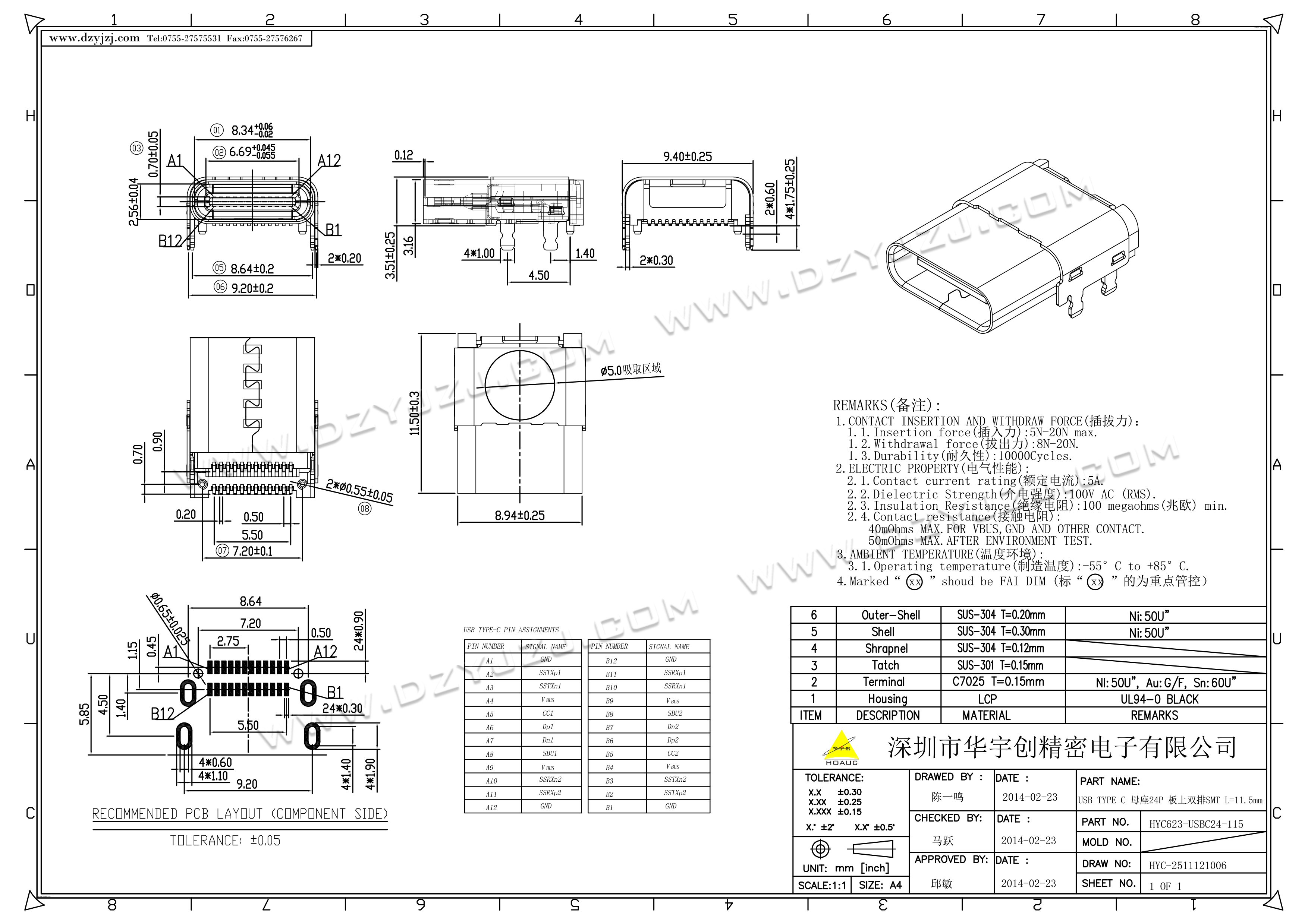 USB TYPE C 3.1母座沉板0.8MM 双排贴片L=7.9